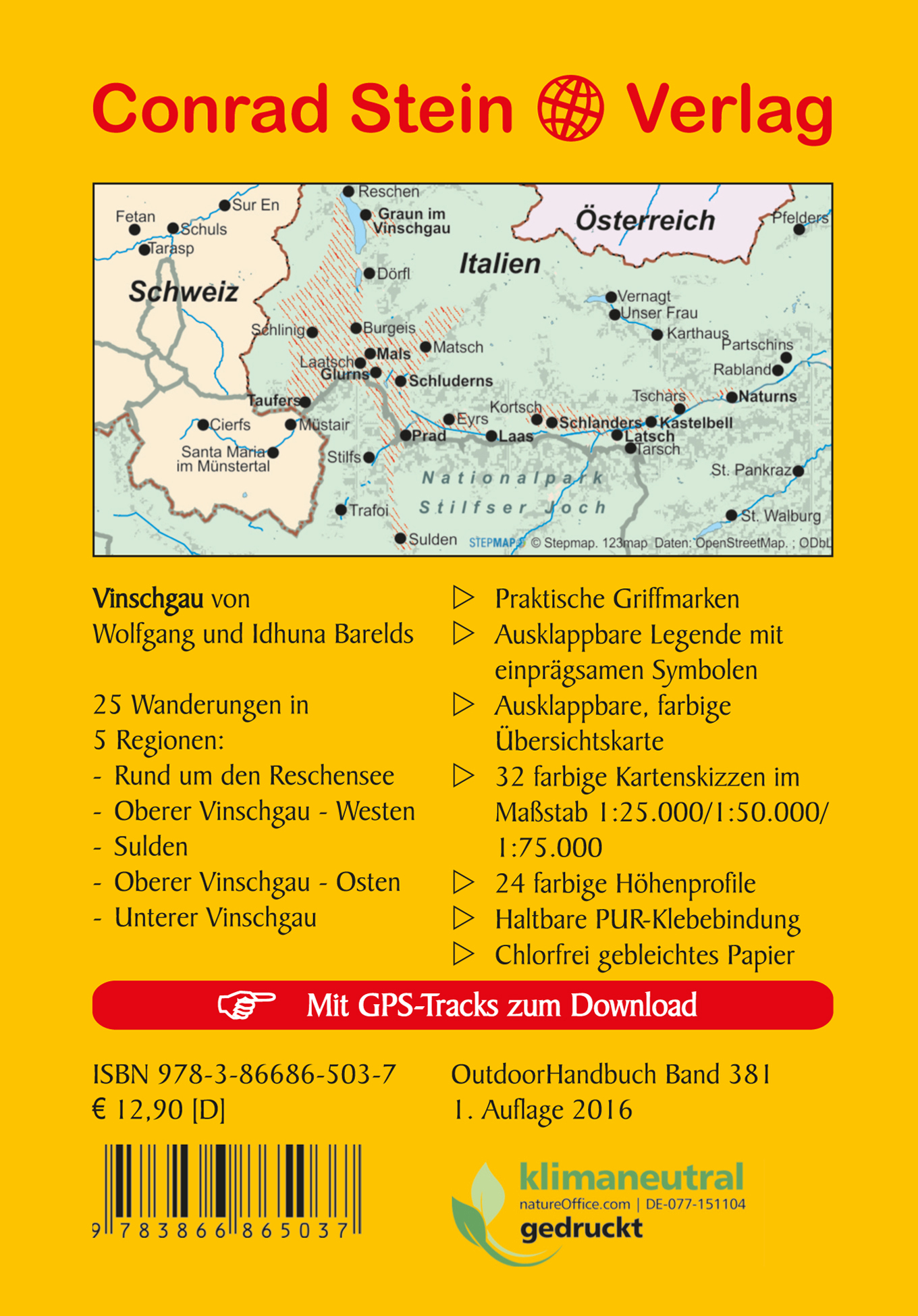 | Schlagworte | europäische wanderwege • GPS Track • Italien • Oberer Vinschgau • Outdoor • outdoor wanderführer • outdoor wanderführer stein verlag • regional • Reiseführer: Abenteuerurlaub • Reiseführer: Reisen mit Kindern, Familienurlaub • Reschen • Routenplaner • Routenplanung • routenplanung wandern • Rundwanderung • Sehenswürdigkeiten • stein conrad verlag • Südtirol • Sulden • tagestour vinschgau • Tageswanderung • trail vinschgau • Trentino-Südtirol • Vinschgau • Vinschgau; Wanderführer • Walking, Wandern, Trekking • Wanderbuch • wanderführer conrad stein verlag • Wandern • Wandern Europa • wandern in Italien • wandern Italien • Wandern mit Buggy • Wandern mit Hund • Wandern mit Kind • wandern Südtirol • Wandern Vinschgau • wanderroute vinschgau • Wanderungen Vinschgau • wanderwege europa • wanderwege vinschgau • Wegbeschreibung |