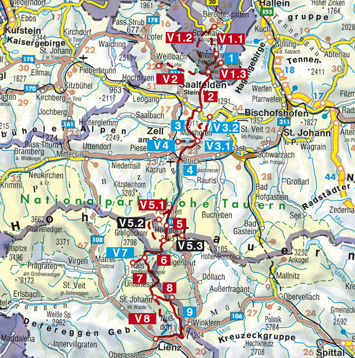 Auf der Strecke zeigen die Ostalpen ihre schönsten Seiten: Es geht vom Königssee durch das Steinerne Meer in den Berchtesgadener Alpen, über die Salzburger Schieferberge in die Hohen Tauern - mit dem Großglockner als Highlight im wahrsten Sinn des Wortes - und in die stille Schobergruppe, bis man schließlich die »Sonnenstadt« Lienz mit ihrem südlichen Flair erreicht. Die Hauptroute schafft man in neun bis zehn Tagen; es gibt jedoch jede Menge anspruchsvolle Varianten und knackige Gipfelbesteigungen. Und falls das Wetter einmal gar nicht mitspielt: Auch alternative Ein- und Ausstiegsmöglichkeiten aus der Tour sind im Buch zu finden.