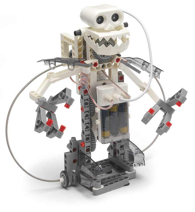 Die jungen Technik-Fans können zwischen acht Roboter-Modellen wählen. Sie können einen humanoiden Roboter konstruieren, der mit zwei Motoren und einem Ultraschall-Sensor ausgestattet ist und damit auf seine Umgebung reagiert. Oder ein Roboter-Krokodil, das angreift und zuschnappt, wenn es gefährlich wird. Die Anleitung erklärt Schritt für Schritt, wie die Modelle gebaut werden, wie man sie programmiert und mit einem Tablet oder Smartphone via Bluetooth steuert. Die zugehörige kostenlose App hält schon sieben Programme bereit, mit denen die verschiedenen Roboter sofort in Bewegung gesetzt werden können.