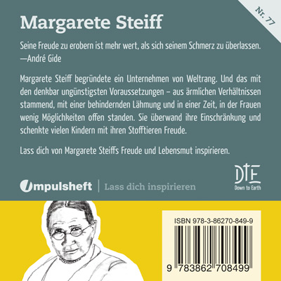 Kinderaugen zum Leuchten bringen – das gelang Margarete Steiff millionenfach. Sie war fast vollständig gelähmt. Und baute trotz ihrer Behinderung ein Unternehmen von Weltrang auf. Ideal für alle, die das Unmögliche schaffen wollen. Margarete Steiff begründete ein Unternehmen von Weltrang. Und das mit den denkbar ungünstigsten Voraussetzungen – aus ärmlichen Verhältnissen stammend, mit einer behindernden Lähmung und in einer Zeit, in der Frauen wenig Möglichkeiten offen standen. Sie überwand ihre Einschränkung und schenkte vielen Kindern mit ihren Stofftieren Freude. Lass dich von Margarete Steiffs Freude und Lebensmut inspirieren.