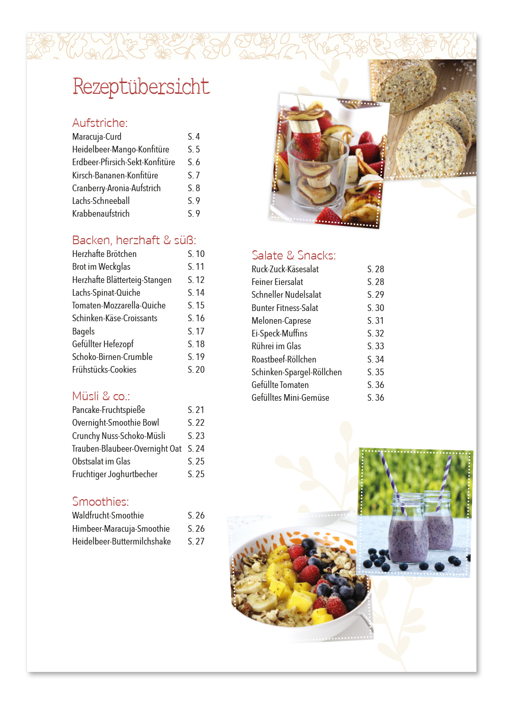 Konfitüren, Smoothies, Salaten und feinen Snacks. Aber auch Raffiniertes mit Ei, Müsli