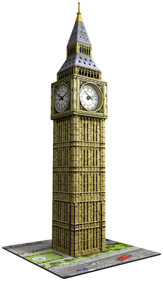 Der Elizabeth Tower - besser bekannt unter dem Namen "Big Ben" - ist eines der bekanntesten Wahrzeichen Londons. Mit diesem 3D Puzzle im tollen Nachtdesign errichten Sie Ihren eigenen Glockenturm im Miniaturformat. Herzstück und echter Blickfang ist dabei die voll funktionstüchtige Uhr, die Ihnen wie das original Bauwerk immer die richtige Uhrzeit anzeigt. Das Bauwerk besteht aus flachen und knickbaren Kunststoffteilen, die dank Easyclick Technology perfekt ineinander passen und ein stabiles 3D Objekt formen, ganz ohne Kleben. Die Nummerierung auf der Rückseite der Puzzleteile erleichtert das Vorsortieren und ermöglicht Puzzeln nach Zahlen. Das beiliegende Zubehör vervollständigt das dekorative Bauwerk. Benötigt wird eine Batterie Typ AAA (nicht enthalten). Spiel-Inhalt: 216 Kunststoff-Puzzleteile + Zubehör + Anleitung. Spieleanleitung in deutsch, niederländisch, spanisch, portugiesisch, französisch, italienisch, englisch. Anzahl Puzzleteile: 216. Größe Puzzle: 5.5 x 5.5 cm.