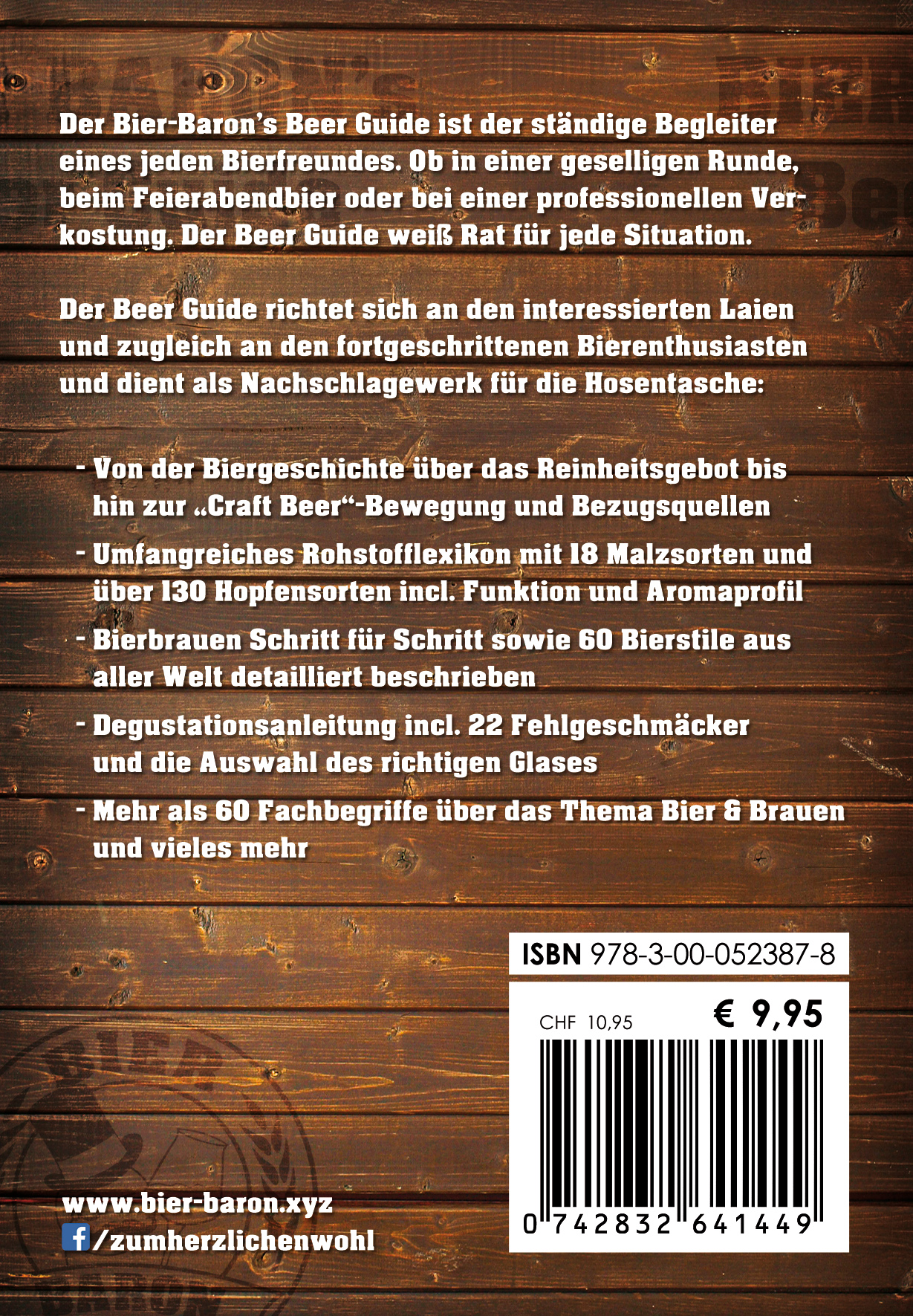 Der Bier-Baron's Beer Guide ist der ständige Begleiter eines jeden Bierfreundes. Ob in einer geselligen Runde, beim Feierabendbier oder bei einer professionellen Verkostung. Der Bier-Baron weiß Rat für jede Situation.
