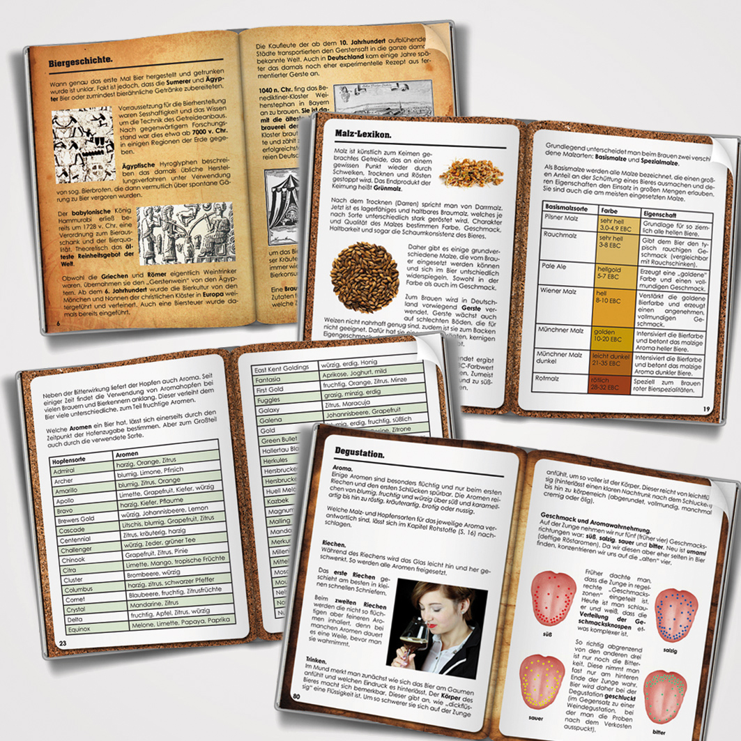 | Zusatzinfo | Veranschaulichungen zum Thema z.B. Illustration vom Reinheitsgebot, grafische Darstellung der Hefe, detaillierter Ablauf des Brauens, ect. |
