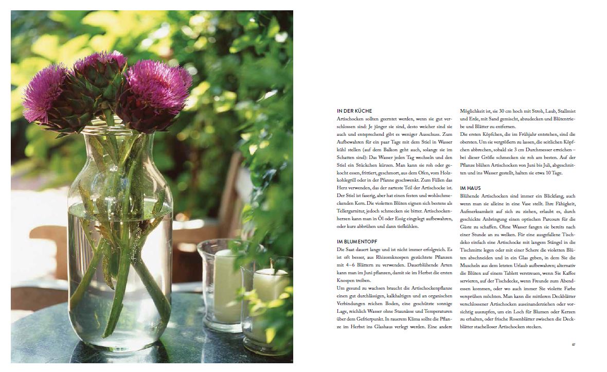 Das ist ein Buch für alle - für diejenigen, die nicht die Zeit oder den Platz haben, um im großen Stil Pflanzen anzubauen, aber auch für die, die weder einen grünen Daumen haben noch Meisterköche sind. Sie müssen nur Pflanzen mögen und die gute, einfache Küche schätzen. Denn alles in diesem Buch ist einfach: sei es, eine Zwiebel zum Blühen zu bringen, eine Tafel zu schmücken oder eine außergewöhnliche Suppe zu kochen.Machen Sie Ihren Balkon zum Nutzgarten! Die Blumen, die ansonsten nur wegen ihrer Schönheit gepflanzt werden, verschönern nun Ihre Tischdekoration und verleihen Ihren Gerichten einen besonderen Geschmack.Zwiebel, Kapuzinerkresse, Borretsch, Rose, Artischocke, Lavendel, Stiefmütterchen, Parákresse, Chrysantheme, Wilder Fenchel, Balsam Springkraut, Rosmarin, Begonie, Amarant