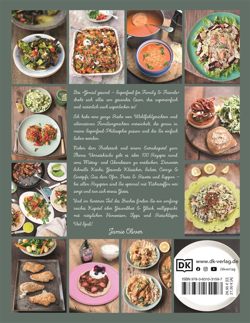 Mit Jamies Ideen ist es ganz unkompliziert, mehr Obst und Gemüse zu essen, schnelle aber trotzdem nahrhafte Gerichte zu kochen und manches Lieblingsgericht gesünder zuzubereiten. Von Schoko-Porridge mit griechischem Joghurt und frischem Obst über Veggie-Bolognese mit Gemüse und Linsen bis zu selbst gemachten Chicken-Nuggets mit Paprika-Parmesan-Panade – bei jedem der über 100 Rezepte kann man immer sicher sein, dass man optimal mit allen Nährstoffen versorgt wird und sich etwas Gutes tut. Und am Ende des Buches gibt es von Jamie viele nützliche Hinweise, Tipps und Informationen rund um gesunde Ernährung wie zum richtigen Kauen, Darmgesundheit oder Zuckerkonsum.