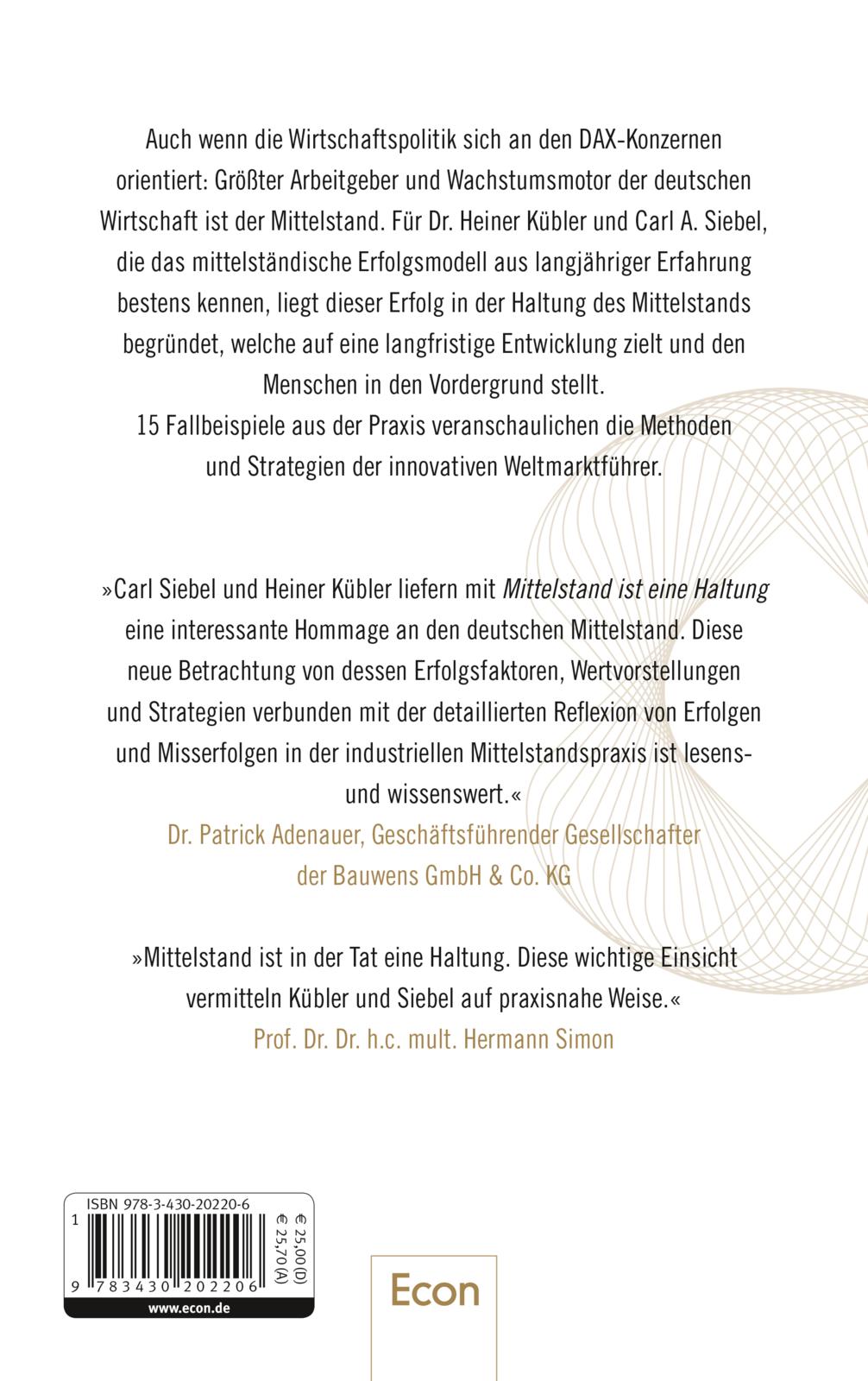 | Schlagworte | Arbeitgeber • Arbeitsplätze • Buch 2016 • Corporate Governance • Deutschland; Wirtschaft • Fallbeispiele • Familienunternehmen • Internationale Wirtschaft, Internationales Managem • Investition • Konzern • Made in Germany • Massenentlassung • Mittelstand • Neu 2016 • Neuerscheinung 2016 • Neuerscheinungen 2016 • Ohoven • Patentanmeldung • Unternehmensethik und soziale Verantwortung, CSR • Unternehmensführung • Unternehmenskultur • Unternehmensphilosophie • Wirtschaftspolitik, politische Ökonomie |