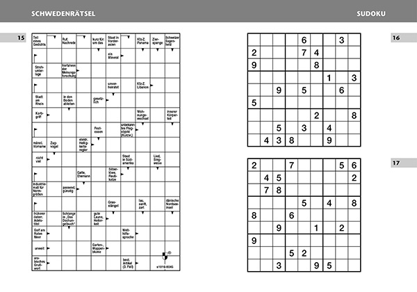 | Schlagworte | Fehlersuche • Gitterrätsel • Kakuro • Knobeln • Kombirätsel • Kreuzworträtsel • Kreuzworträtselbuch • Kreuzworträtselheft • Lifestyle, Hobbys und Freizeit • lösen • Magische Quadrate • Puzzle • Rätsel • Rätselbuch • Rätsel f. Kinder/Jugendliche • Rätselheft • Rätselmix • Rätseln • Schüttelrätsel • Schwedenrätsel • Sudoku • Wabenrätsel • Wörterversteck • Zahlensuche |