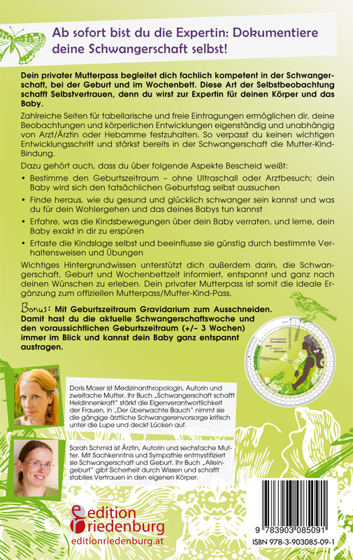 | Schlagworte | aktiv gestalten • Alleingeburt • Anthropologie • Baby • Die selbstbestimmte Geburt • Dokumentieren • Eintragungen • Folgeschwangerschaft • Geburtsbuch • Geburtsvorbereitung • HypnoBirthing • Kaiserschnitt • Medizinische Früherkennung, Reihenuntersuchung, Sc • Mutter-Kind-Pass • Mutterpass • Natürliche Geburt • Notizbuch • Ratgeber: Schwangerschaft, Geburt und Babypflege • Schwanger • Schwangerenvorsorge • Schwangerschaft • Schwangerschaft / Gravidität • Schwangerschaftskalender • selbstbestimmte Geburt • Tagebuch • Vorsorge • Wunschgeburt |