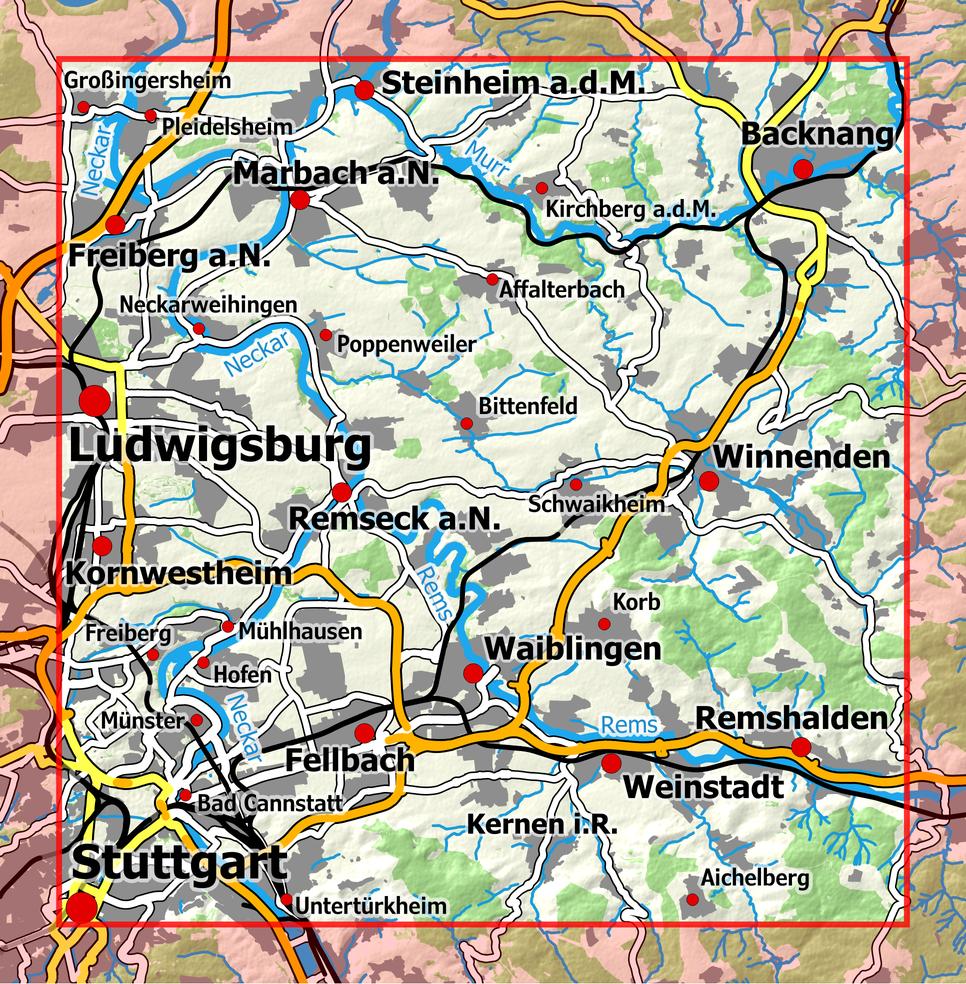 | Schlagworte | 1 : 25 000 • 1:25000 • Backnang • Fahrrad • Fellbach • Geowissenschaften, Geographie, Umwelt, Planung • Karte • Landkarte • Lifestyle, Hobbys und Freizeit • Ludwigsburg • Marbach am Neckar • Mathematik und Naturwissenschaften • Natur • Radeln • radfahren • Radwanderkarte • Radwandern • Radwege • Sport und Freizeit • Stuttgart • Stuttgart (Umgebung), Karte; Radkarte • Stuttgart (Umgebung), Karte; Wanderkarte • Topografische Karte • Topographische Karte • Waiblingen • Wanderkarte • Wandern • Wanderwege • Winnenden |