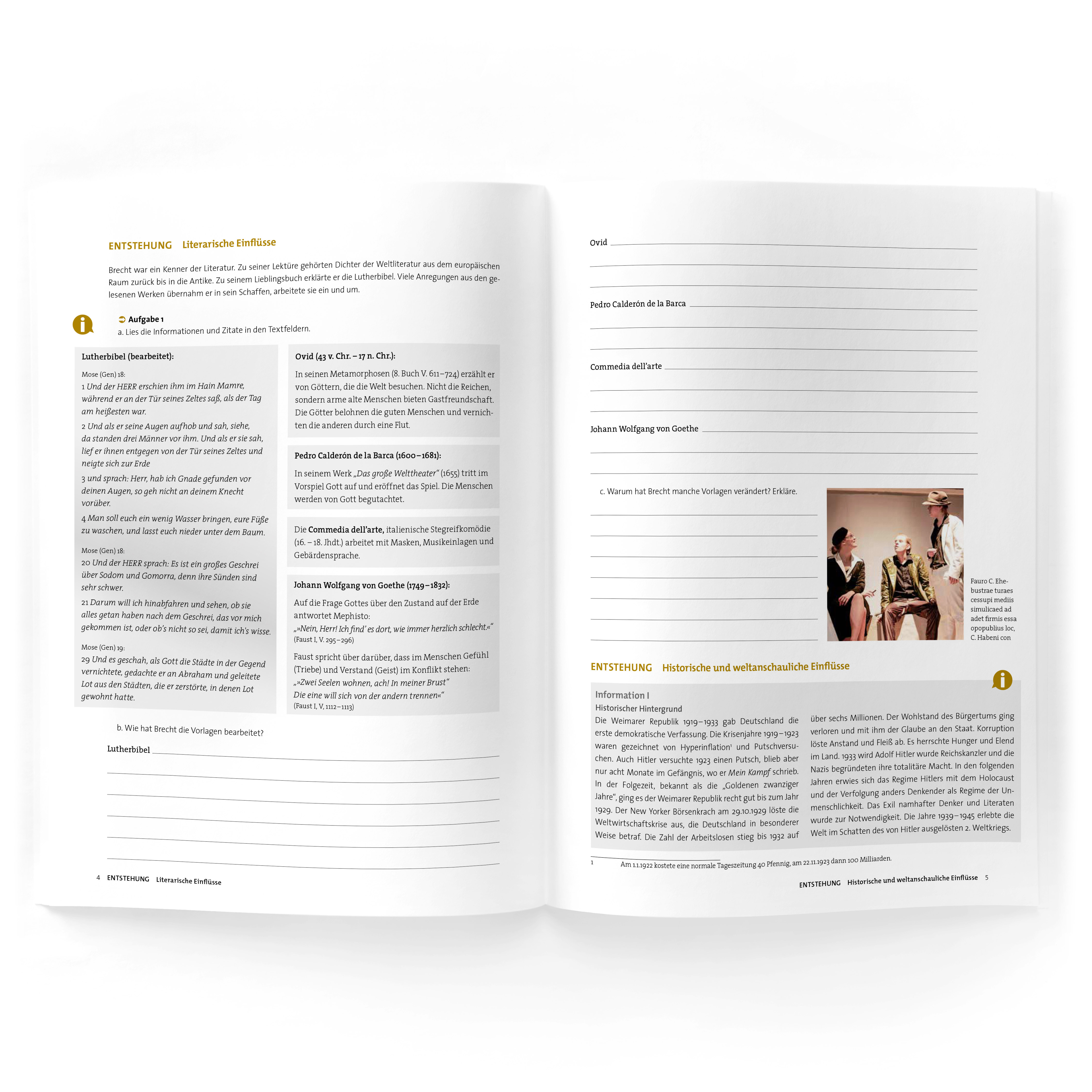 Das Schülerarbeitsheft enthältInformationen zur DramengattungInhalts- und VerständnissicherungSchreibaufgaben (Dialog, innerer Monolog, Rollenbiografie)Figurenkonstellation und BeziehungenAufbau, Textmerkmale, Sprache und StilErschließung der Thematik und MotiveInterpretationsaspekteEntstehung und Bertolt Brechts Lehrstück heuteBrechts Biografie und WerkMaterialien zu den Themen des StücksGlossar