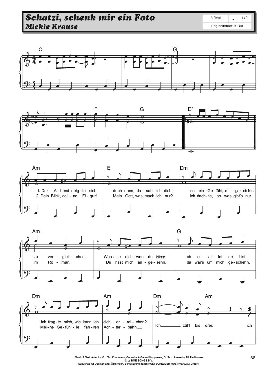 | Schlagworte | C-Dur • Liederbücher, Gesangbücher • Musikalien Rock/Pop/Jazz; Gitarre/E-Gitarre (Sammlungen) • Musikalien Rock/Pop/Jazz; Keyboard (Sammlungen) • Musikalien Rock/Pop/Jazz; Klavier/E-Piano (Sammlungen) • Musiknoten • Noten (Musik) • Schlager |