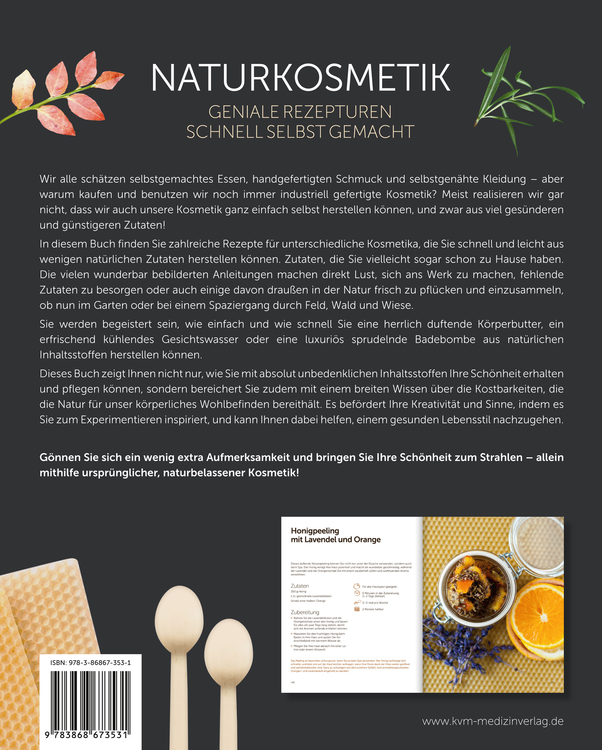 In diesem Buch finden Sie zahlreiche Rezepte für unterschiedliche Kosmetika, die Sie schnell und leicht aus wenigen natürlichen Zutaten herstellen können. Zutaten, die Sie vielleicht sogar schon zu Hause haben. Die vielen wunderbar bebilderten Anleitungen machen direkt Lust, sich ans Werk zu machen, fehlende Zutaten zu besorgen oder auch einige davon draußen in der Natur frisch zu pflücken und einzusammeln, ob nun im Garten oder bei einem Spaziergang durch Feld, Wald und Wiese.