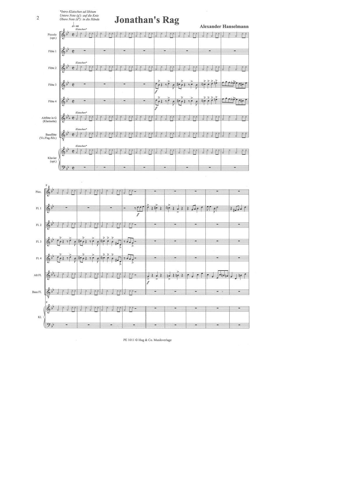 JONATHAN'S & TOBI'S RAG schliesst an den Ergänzungsband 1 KANONS & TRIOS an. Die beiden Stücke sind für grosses Querflötenensemble oder für Schülerorchester einsetzbar. Beiliegendes Stimmenmaterial für 4 Flöten, Piccolo, Altflöte in G oder Klarinette, Bassflöte oder Cello/Fagott, Klavier