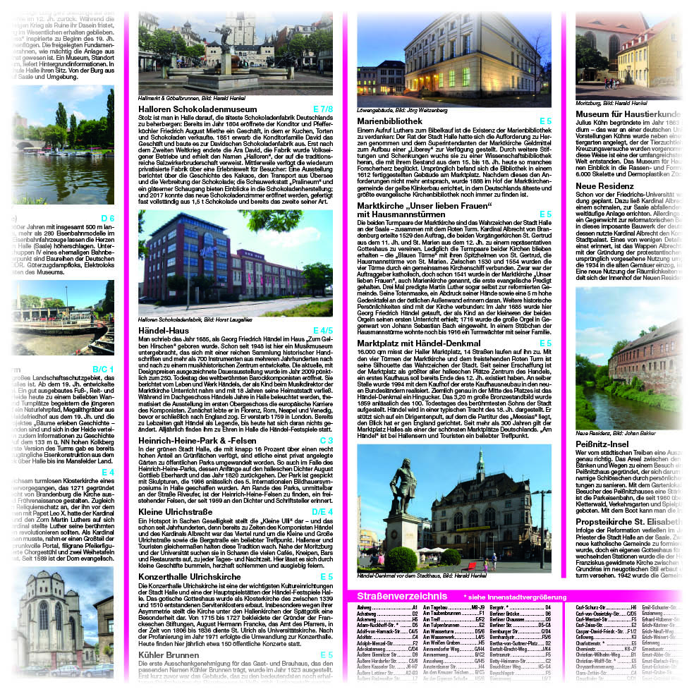 Salzquellen bildeten einst die Grundlage für den Reichtum Halles, was sich im keltischen Namen "Hall" für Salz widerspiegelt. In der Geburtsstadt von Georg Friedrich Händel zeugen die historische Altstadt sowie Burgen, Museen und alte Gotteshäuser von 1.200 Jahren Stadtgeschichte. Die Altstadt mit ihren Bürgerhäusern, Kirchen und Parks stellt das größte Flächendenkmal Europas dar. Architektonisch interessant ist die beeindruckende Mischung verschiedener Baustile. Die Universitätsstadt Halle ist ein modernes Forschungszentrum mit 500-jähriger Tradition mit vielen kulturellen Angeboten.