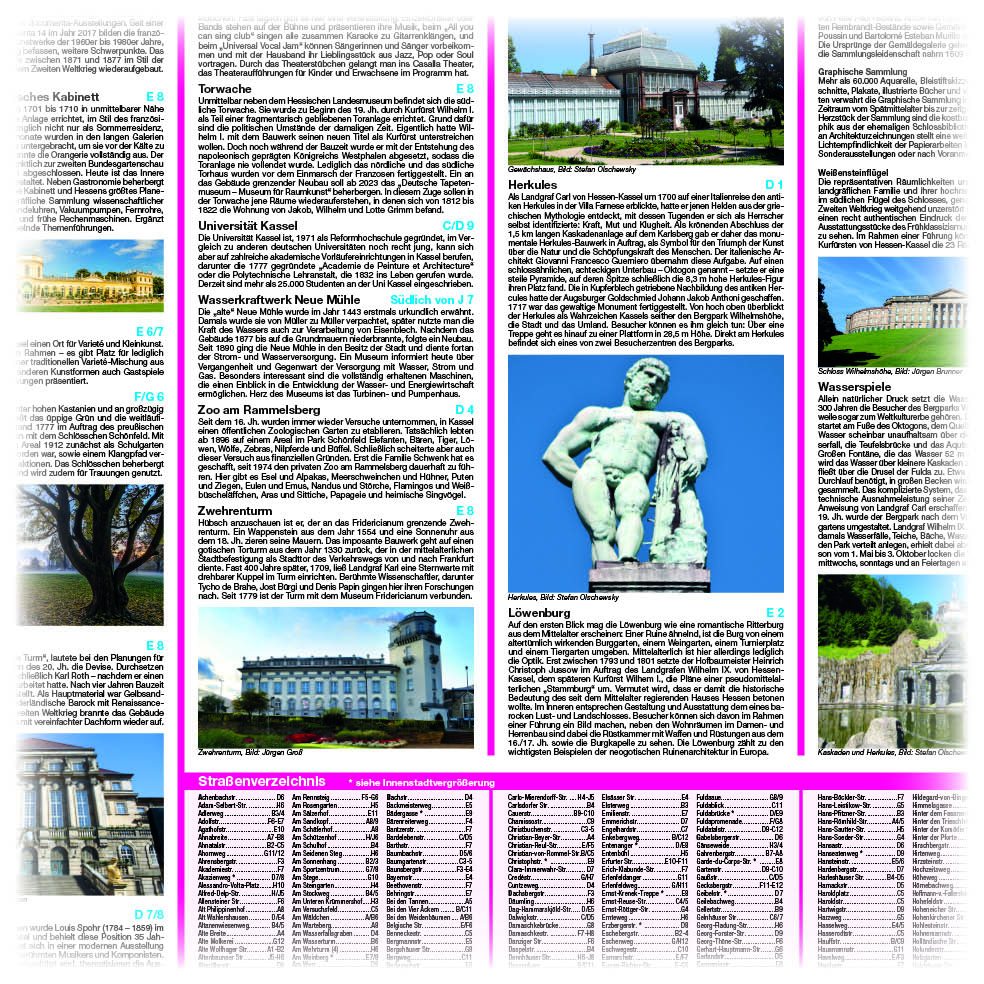 Kassel, märchenhafte documenta-StadtOb Kunst oder Kultur, Shoppingtour oder Entspannung in der Natur: Es gibt viele gute Gründe, Kassel zu besuchen. Die dynamische documenta-Stadt an der Fulda bietet einzigartige Sehenswürdigkeiten ebenso wie kulturelle Höhepunkte - angefangen bei der vielfältigen Museumslandschaft über das UNESCO-Weltkulturerbe Bergpark Wilhelmshöhe bis hin zur Kasseler GRIMMWELT. Ein Spaziergang lohnt zu den 13 documenta-Außenwerken in der Stadtmitte. Mit dem touristischen Stadtplan entdecken Sie alle wichtigen Sehenswürdigkeiten und verlieren dank Umgebungskarte, Innenstadtvergrößerung und Straßenverzeichnis nie die Orientierung.