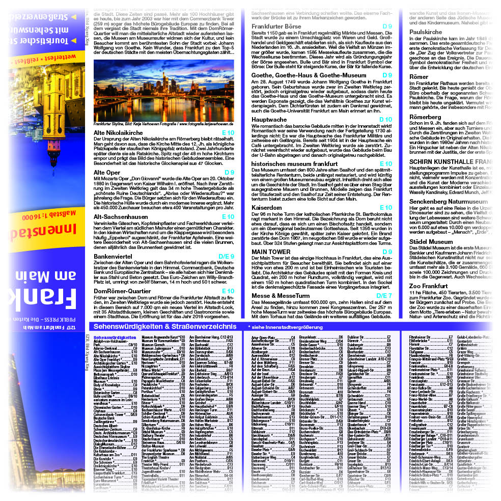 Börsensitz, deutsche Finanzhauptstadt, Mainhatten, Flughafenknotenpunkt - all das verknüpft man mit der hessischen Mainmetropole. Doch Frankfurt bietet mehr als das: Neben der einzigartigen Skyline mit Main und mehr als 100 Wolkenkratzern warten der Kaiserdom, die Alte Oper, zahlreiche Museen und weitere kulturelle Highlights in Goethes Heimatstadt auf Entdeckung. Der touristische Innenstadtplan enthält alle wichtigen Sehenswürdigkeiten, eine Innenstadtvergrößerung im Maßstab 1:10 000 und ein Straßenverzeichnis zur schnellen Orientierung.