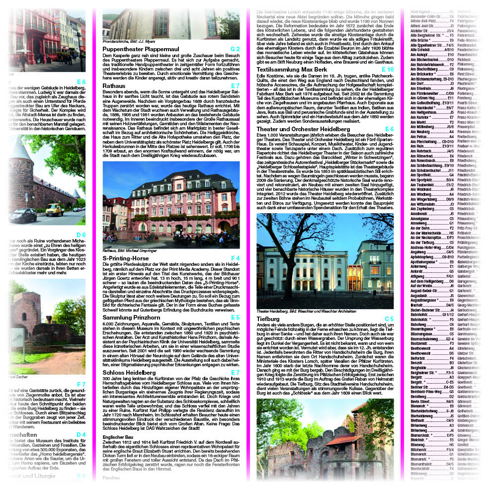 Die romantischen Ruinen des Heidelberger Schlosses, das blaue Band des Neckars und die malerische, durch den Barockstil geprägte Altstadt machen den Charme der Stadt Heidelberg aus. Die ehemalige Residenzstadt der Kurfürsten bezauberte schon Persönlichkeiten wie Goethe, Mark Twain und Clemens Brentano. Bis heute zieht der Blick vom Heiligenberg auf den berühmten Dreiklang aus Schloss, Fluss und Altstadt die Besucher in seinen Bann. Mit dem touristischen Stadtplan entdeckt man alle wichtigen Sehenswürdigkeiten und hält dank Straßen- und Sehenswürdigkeitenverzeichnis, Übersichtsplan rund um Heidelberg und Innenstadtvergrößerung im Maßstab 1:10 000 einen praktischen Begleiter für den Städtetrip in der Hand.