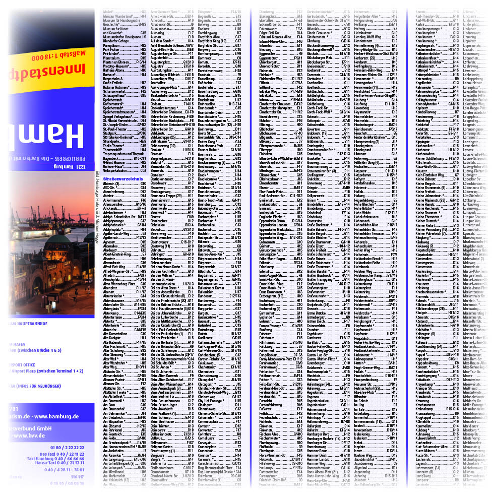 Die norddeutsche Elbmetropole mit ihrem bunten Treiben im Hafen, den großen "Pötten" und Kreuzfahrtschiffen sowie der Reeperbahn fasziniert. Ob Fischmarkt, Elbphilharmonie, Binnenalster oder Musicals - die Stadt hält für jeden Geschmack das richtige Angebot bereit. Die Speicherstadt lockt mit dem Miniatur Wunderland, Hamburg Dungeon und Museen, der Hamburger Fischmarkt mit seinen Marktschreiern und die HafenCity mit ihren modernen Bauwerken. Der touristische Innenstadtplan enthält alle wichtigen Sehenswürdigkeiten, eine Innenstadtvergrößerung im Maßstab 1:10 000 und ein Straßenverzeichnis zur schnellen Orientierung.