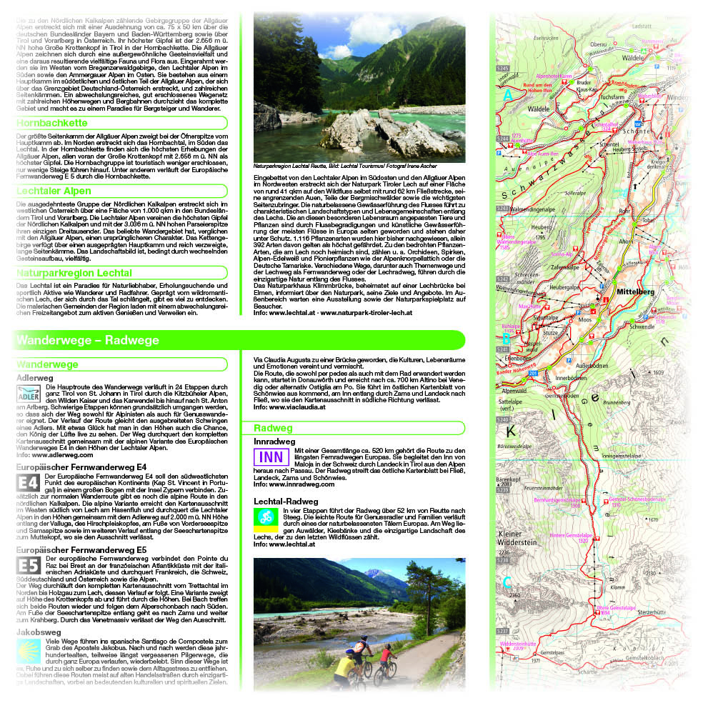 Das Lechtal ist ein Paradies für Naturliebhaber, Erholungsuchende und sportlich Aktive wie Wanderer und Radfahrer. Geprägt vom wildromantischen Lech, der sich durch das Tal schlängelt, gibt es viel zu entdecken. Die malerischen Gemeinden der Region laden mit einem vielseitigen Freizeitangebot zum aktiven Genießen und Verweilen ein. Unterhaltung, Spaß und Abwechslung garantieren u. a. eine Sommerrodelbahn, die Museen wie das Bergheumuseum, geschichtsträchtige Ruinen, alte Schmugglerpfade und vieles mehr ...