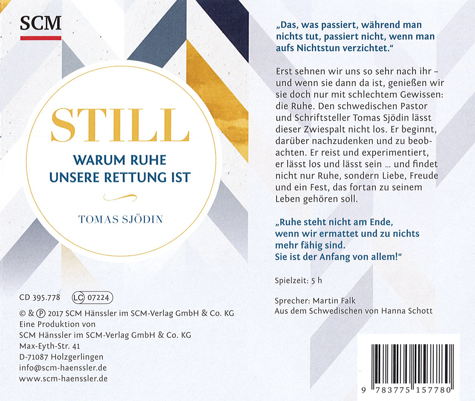 | Schlagworte | Arbeit • Christliche Lebenshilfe • Hörbuch • Nichtstun • Pause • Ruhe • Sabbat • Spiritualität • Stille • wachsen |