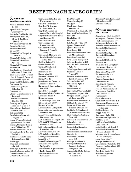 Die LEON-Profis präsentieren in ›Fast & Free‹ über 250 Rezepte, die alle frei von Gluten, Milch und raffiniertem Zucker sind. Auf den ersten Blick ist ersichtlich, ob ein Gericht zusätzlich vegetarisch, vegan, paleo oder frei von Nüssen ist, einen niedrigen glykämischen Index hat oder wenig gesättigte Fettsäuren enthält.
