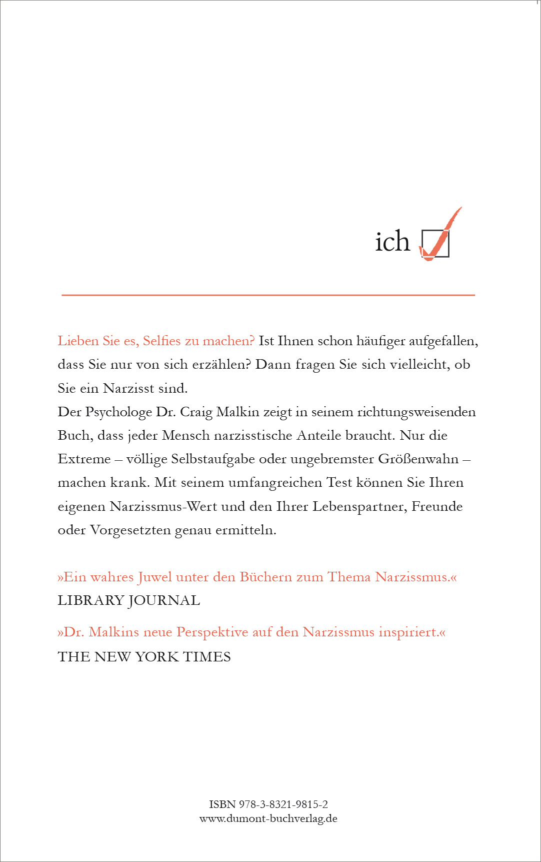 „Malkin nimmt dem Wort Narzissmus das Pathologische, das seit einiger Zeit an ihm klebt, und zeigt, wie adaptiv es für Menschen ist, sich wertvoll zu fühlen. Ein Buch, das mal wieder stolz und ohne Schuldbewusstsein in den Spiegel sehen lässt.“