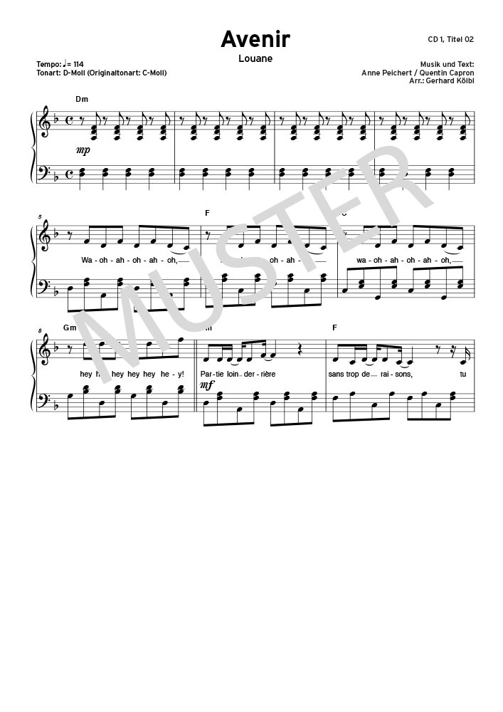 2 Bücher in einem! Das universelle Songbook für viele Instrumente. Für Klavierspieler gibt es ein Klavierarrangement und für Keyboarder, Gitarristen und Sänger eine Melodiestimme mit Akkorden, vollständigem Text, Soundvorschlägen, Rhythmusangaben und Tempohinweisen. Die Melodiestimme ist bei vielen Songs auch für Querflöte, Blockflöte oder Violine geeignet. Zusätzlich sind alle Songtexte als reine Textseiten abgedruckt. Zu jedem Song gibt es ein professionelles Playback zum Mitsingen oder Mitspielen.