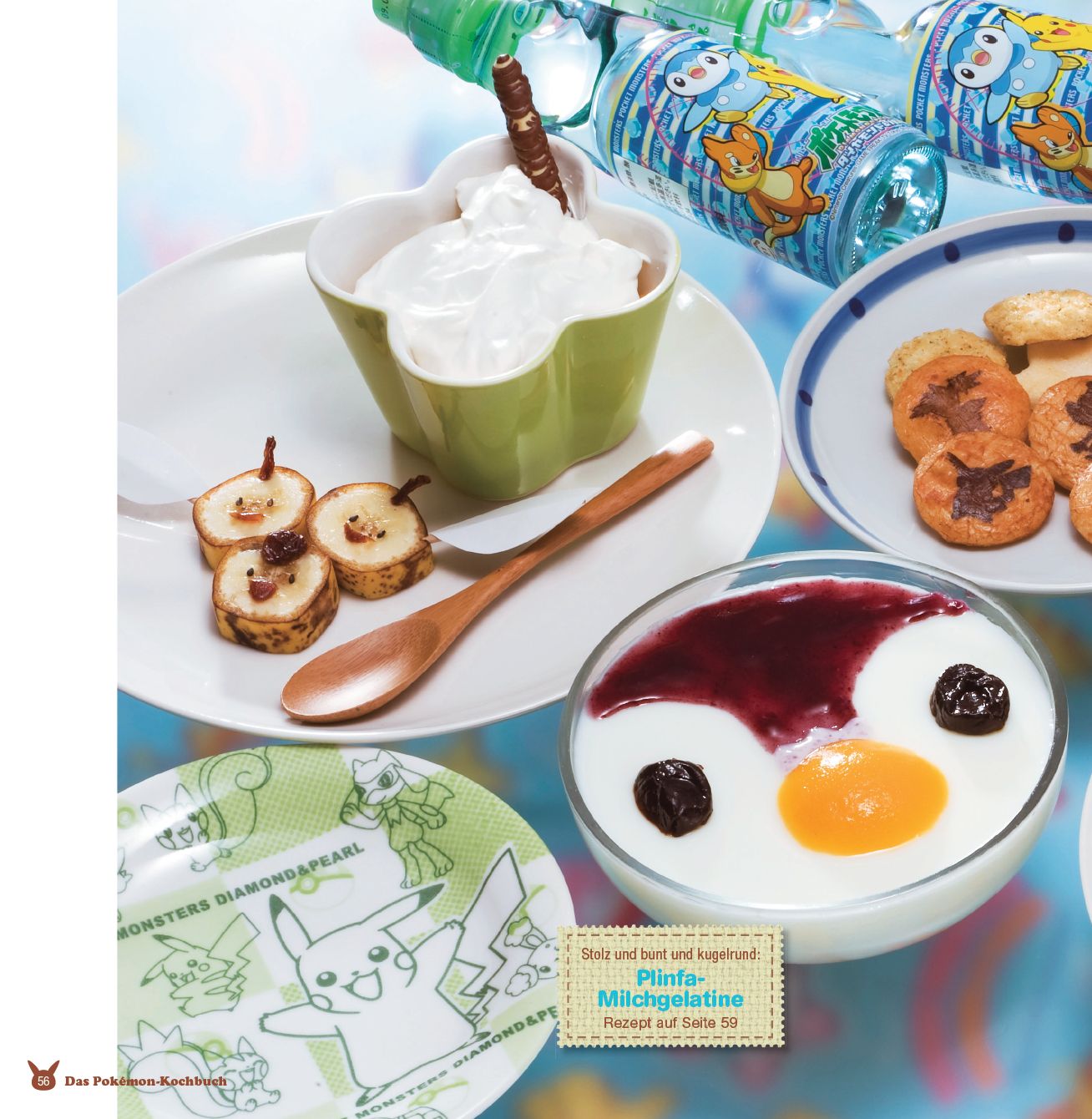 WIR KOCHEN NACH POKÉMON-ART! Ein Wort an die Erwachsenen Dieses Kochbuch basiert auf den sehr beliebten Pokémon-Figuren. Die Zutaten und Rezepte in diesem Buch sind so ausgelegt, dass sie auch von Kindern ausprobiert werden können – egal, ob sie zuvor bereits in der Küche mitgewerkelt haben oder nicht. Kochen Sie doch einfach zusammen mit Ihren Kindern. Nutzen Sie die Gelegenheit, während der gemeinsamen Zubereitung feiner Leckereien auch über Ihre persönlichen Lieblings-Pokémon zu plaudern. Ganz nebenbei erfahren Ihre Kinder dabei spielend Interessantes und Nützliches rund ums Thema Ernährung. Ein spaßiges Erlebnis für die ganze Familie! Genieße dein Essen! Beim Essen geht es nicht nur darum, deinen Körper mit Nährstoffen zu versorgen. Entdecke auch die unterschiedlichen Düfte und Aromen sowie die vielen Geschmacksrichtungen, die es dir bietet. Gemeinsam etwas Leckeres zuzubereiten und zu schlemmen, bedeutet auch, mit deinen Freunden und deiner Familie zusammen zu sein. Du wirst staunen, was man dabei so alles entdecken und lernen kann. Freu dich auf all die guten, gesunden Leckereien, die euch im Handumdrehen gelingen werden! Von allem ein wenig … Wusstest du, dass Nährstoffe mindestens so wertvoll sind wie zum Beispiel Pokémon-Entwicklungssteine? Denn im Essen steckt viel Power, die deinen Körper gesund hält. Um fit und leistungsstark durch den Tag zu kommen, isst du am besten so oft wie möglich von vielen verschiedenen Lebensmitteln. Sie liefern dir auf unterschiedliche Weise Energie. So ernährst du dich ausgewogen und das macht stark! Drei Mahlzeiten pro Tag! Sei kreativ und aktiviere deine Power mehrmals täglich. Beginne damit gleich morgens mit einem leckeren Frühstück. Dann steht einem tollen Tag nichts im Wege. Ausprobieren lohnt sich auf jeden Fall – viel Vergnügen!