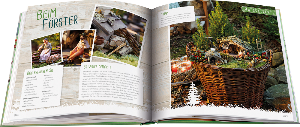 fürs Kreativwerden bereit und das in ganz unterschiedlichen Stilrichtungen. Von reduziert asiatisch bis romantisch verspielt ist alles dabei! Dazu gibt’s alles Wissenswerte zu Bepflanzungstechniken, Gefäßen und Pflegehinweisen. Serviceseiten erläutern die richtigen Pflanzen und alle benötigten Materialien. Fantasievoll und individuell lassen sich so ganz leicht kleine Welten erstellen.