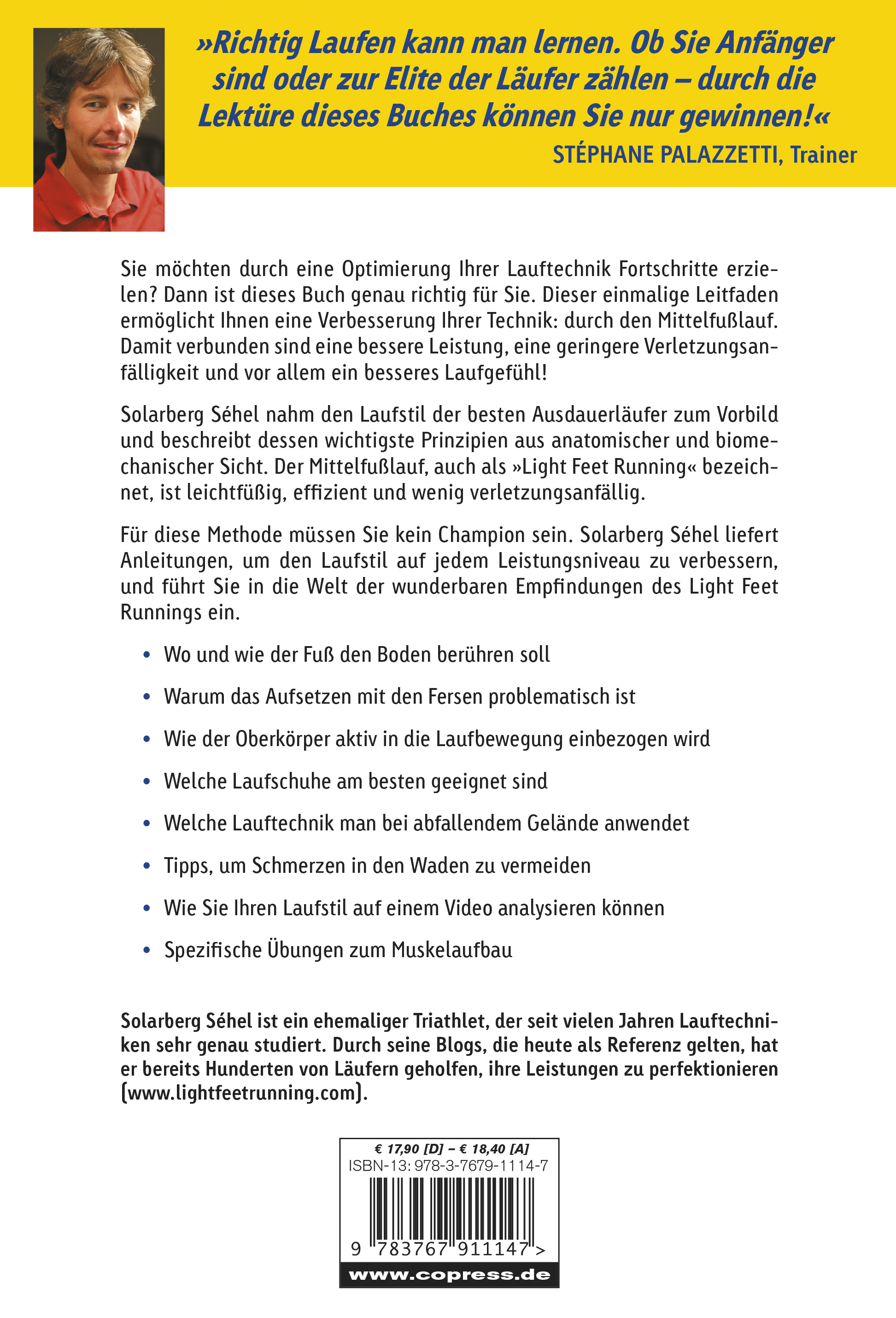 Solarberg Séhel hat als Leistungssportler Triathlon betrieben. Er beschäftigt sich seit über 25 Jahren mit Lauf- und Schwimmtechniken und seine Blogs sind für zahllose Athleten zu einer Referenz geworden. Zuletzt erschien von ihm bei Copress »Besser Kraul-Schwimmen«