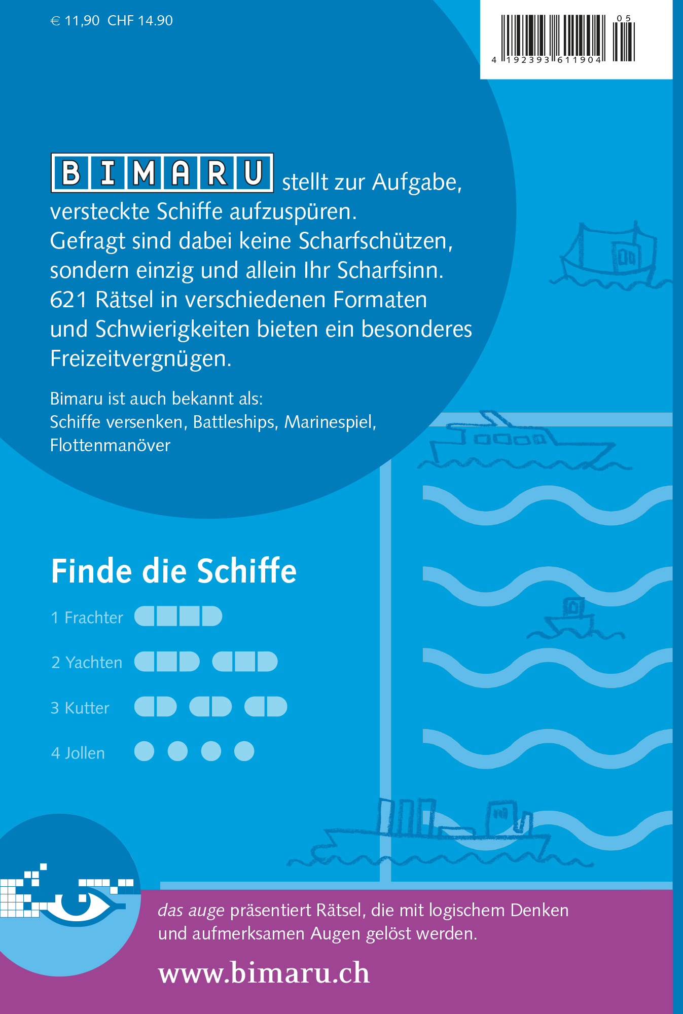 Bimaru - das Spiel Schiffe Versenken als Rätsel. In Bimaru spüren Sie versteckte Schiffe auf, denn wo sie sich befinden, lässt sich mit etwas Scharfsinn und Beobachtungsgabe herausfinden. Ein unterhaltsames visuelles Rätsel, das jeder schnell begreift. Bimaru wird immer populärer: Verschiedene Tageszeitungen publizieren Bimaru neben Sudoku - und kommen nicht mehr davon los. In Frankreich ist es bekannt als Bataille Navale und in englischsprachigen Ländern als Battleship. In diesem großformatigen Buch (17 x 24 cm) sind über 600 Rätsel - ein Schnäppchen. Bereits ist jetzt Band 05 erschienen. Gibt's auch als App!