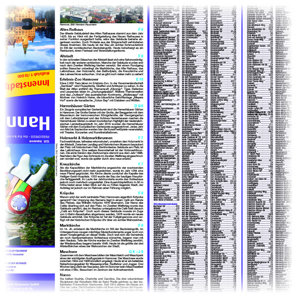 Herrenhäuser Gärten, die Schlösser, EXPOSEEUM, Neues Rathaus und Nanas - die niedersächsische Landeshauptstadt Hannover am Ufer der Leine glänzt mit vielen Highlights. Der touristische Innenstadtplan Hannover enthält alle wichtigen Sehenswürdigkeiten, eine Innenstadtvergrößerung im Maßstab 1:10 000 und ein Straßenverzeichnis zur schnellen Orientierung.