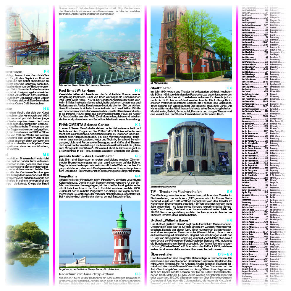 Bremerhaven wurde einst als Hafen Bremens angelegt und mauserte sich in den letzten Jahren von der kleinen Hafenanlage zum attraktiven Städtereisen-Magnet. Heute lockt die Seestadt an der deutschen Nordseeküste mit zahlreichen Attraktionen. Die Havenwelten begeistern mit verschiedenen sehenswerten Museen, im Alten Hafen treffen Historie und Moderne aufeinander und das Schaufenster Fischereihafen lädt zum Bummeln ein. Der touristische Stadtplan enthält alle wichtigen Sehenswürdigkeiten, einen Übersichtsplan rund um Bremerhaven im Maßstab 1 : 200 000, eine Innenstadtvergrößerung im Maßstab 1:10 000 und ein Straßenverzeichnis zur schnellen Orientierung.