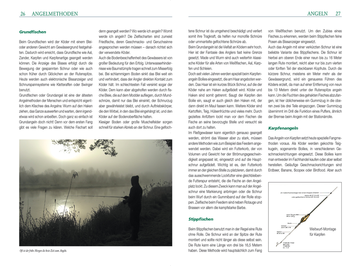 - Was ist eine Querangel? - Wie funktioniert das Auge des Fisches? - Aus welchem Land stammt das Matchangeln? - Wie heißt die "Blei" noch? - Wo beginnt das Leben der Aale? - Wann laicht der Hecht? - Wie heißt der Dorsch noch? Das interessante Nachschlagewerk über das "Angeln" beantwortet dem Leser wichtige Fragen zur Geschichte des Angelns, zu Angelmethoden, Fischarten, Ausrüstung und Gewässer. Mit der richtigen Rute und der optimalen Fangtechnik hat der Leser mehr Spass und Erfolg bei seinem Hobby. Kurze, verständliche Texte, detaillierte Illustrationen, großzügige Tabellen und viele Abbildungen erleichtern die Umsetzung in die Praxis. Ein kleiner Ratgeber über das "Fischeräuchern" und ein paar Fischrezepte runden das Thema "Angelfischerei" ab.