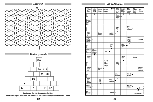 | Schlagworte | Fehlersuche • Gitterrätsel • Großdruckbände; Rätsel • Großschrift • Hobbys, Rätsel und Spiele • Kakuro • Knobeln • Kombirätsel • Kreuzworträtsel • Kreuzworträtselbuch • Kreuzworträtselheft • lösen • Magische Quadrate • Puzzle • Rätsel • Rätselbuch • Rätselheft • Rätselmix • Rätseln • Schüttelrätsel • Schwedenrätsel • Wabenrätsel • Wörterversteck • Zahlensuche |