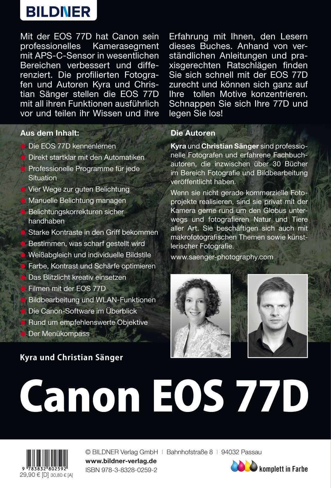 lt;p>Mit der EOS 77D hat Canon sein professionelles Kamerasegment mit APS-C-Sensor in wesentlichen Bereichen verbessert und differenziert. Die profilierten Fotografen und Autoren Kyra und Christian Sänger stellen die EOS 77D mit all ihren Funktionen ausführlich vor und teilen ihr Wissen und ihre Erfahrung mit Ihnen, den Lesern dieses Buches. Anhand von verständlichen Anleitungen und praxisgerechten Ratschlägen finden Sie sich schnell mit der EOS 77D zurecht und können sich ganz auf Ihre tollen Motive konzentrieren. Schnappen Sie sich Ihre 77D und legen Sie los!
