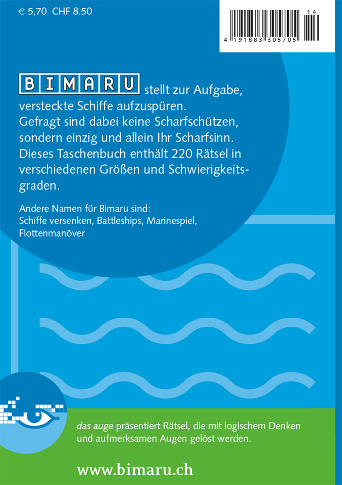 Wer Schiffe Versenken kennt und liebt - aber gerade keinen Partner zur Hand hat -, hat an BIMARU seinen Spass. In diesem Rätsel spüren Sie versteckte Schiffe auf, denn wo sie sind, lässt sich mit etwas Scharfsinn und Beobachtungsgabe herausfinden. Ein unterhaltsames visuelles Rätsel, das jeder schnell begreift. BIMARU hat vor allem in der Schweiz einen wahren Siegeszug hinter sich: Verschiedene Tageszeitungen publizieren Bimaru neben Sudoku - und BIMARU setzt sich durch. In Frankreich ist es bekannt als Bataille Navale und in englischsprachigen Ländern als Battleships