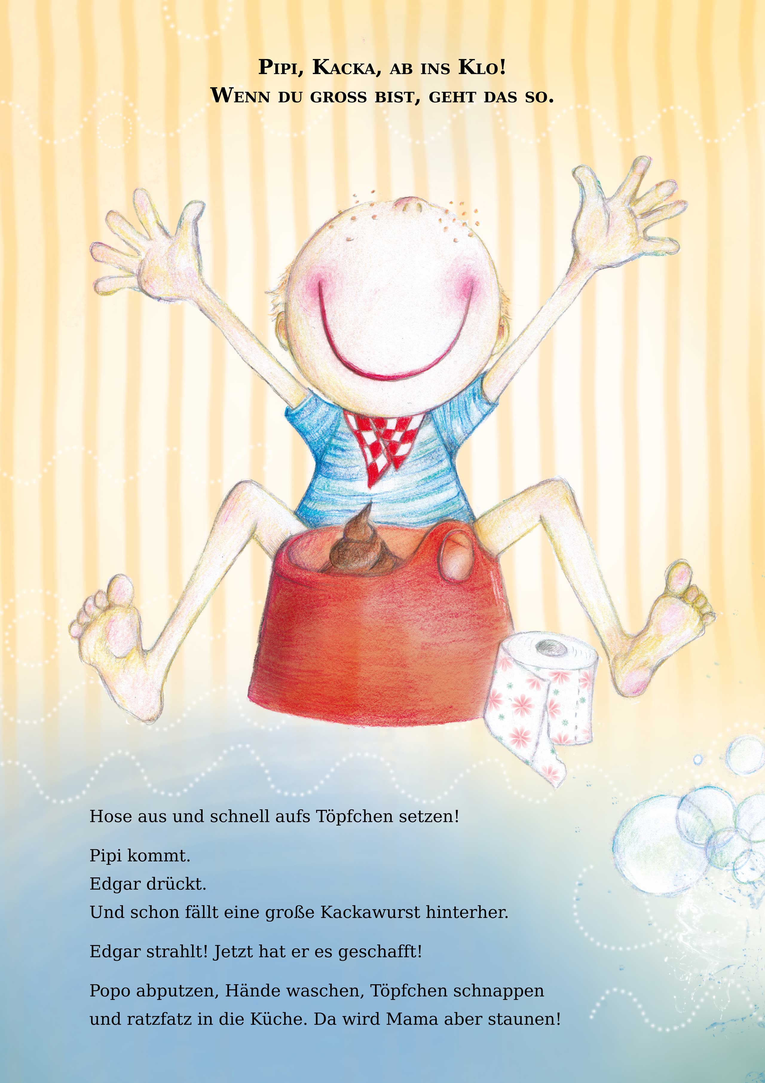 Eine Anleitung für Eltern, die verdeutlicht, wie mit Hilfe von Edgars Töpfchentrick geübt werden kann, befindet sich im Buch.