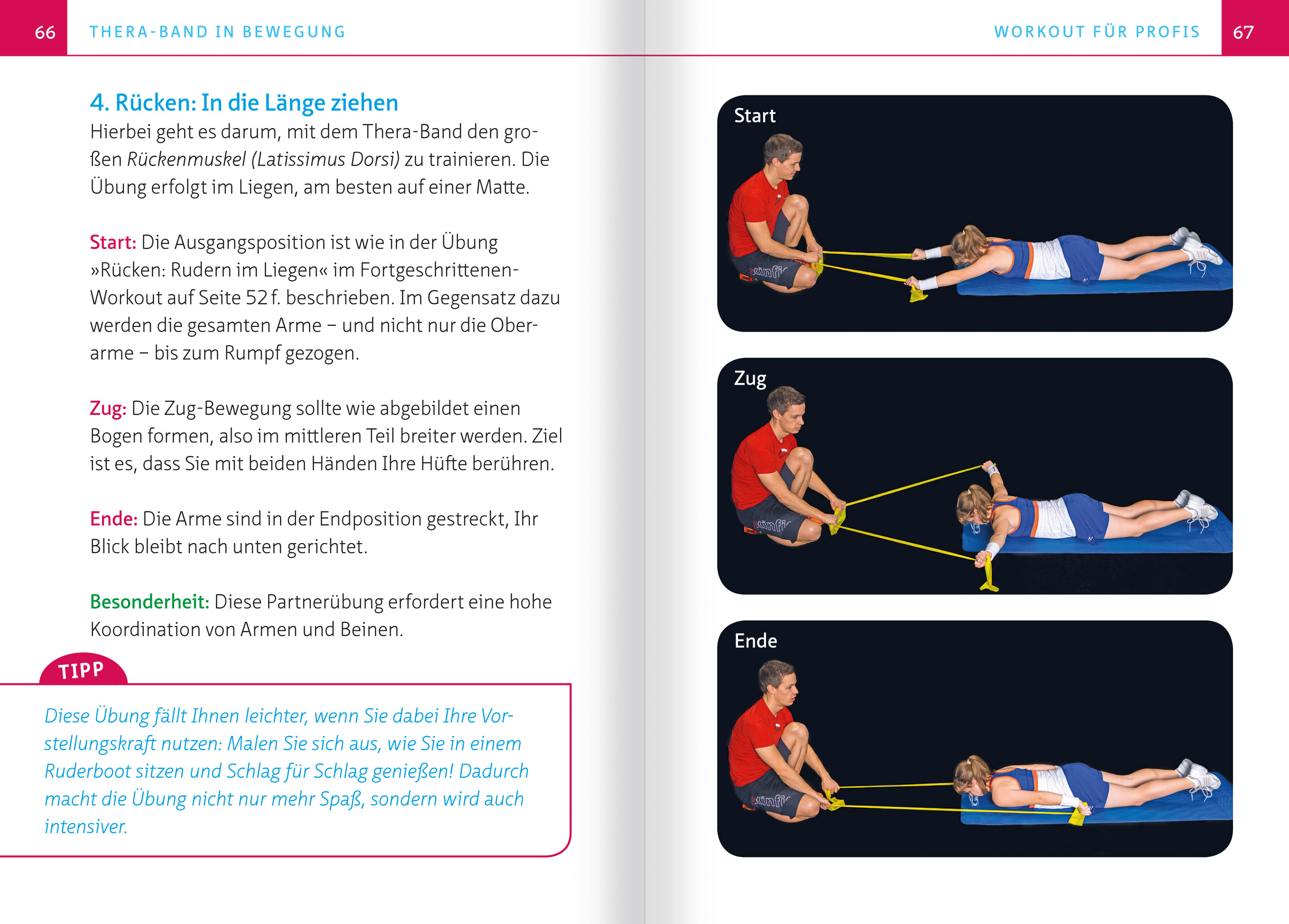 INHALTVorwortEinleitungAM LAUFENDEN BANDElastisches Latexband- Elastizität- Latexfrei?- Pflege- KostenSelbsttest: Welches Band brauche ich?- Fitness- FarbeTechnik zum Anfassen- Wicklung für die Hände- Fixierung für die FüßeBandbreite von Anwendungen- Mobilisierung- Stretching- Kräftigung- KoordinationTrainingstipps: Zug um Zug zu mehr BeweglichkeitTHERA-BAND IN BEWEGUNGÜbungen für Einsteiger1. Nacken: Keine Ahnung2. Schultergelenk: Schiebetür3. Arme: Strecken4. Hände: Komm zu mir5. Rücken: Schmetterling rücklings6. Beine: Außenseite7. Rumpf: ZappelphilippVarianten für Fortgeschrittene1. Nacken: Schildkröte2. Schultergelenk: X-Form3. Arme: Beugen4. Brust: Auto schieben5. Rücken: Rudern im Liegen6. Beine: Innenseite7. Rumpf: FensterputzenWorkout für Profis1. Schultergürtel: Haltung bewahren2. Rotatoren-Manschette: Türsteher3. Brust: Schmetterling4. Rücken: In die Länge ziehen5. Gesäß: Anlauf nehmen6. Bauch: Einrollen7. Rumpf: UnterarmstützTrainingstagebuchEntspannung und Wohlbefinden- Faszienmassage- TapingverbändeSTURZPROPHYLAXE FÜR SENIORENLebensnahe Übungen1. Ganzkörper: Stehaufmännchen2. Arme: Anziehpuppe3. Beine: SpinneDanksagung- Sponsoren- WidmungInfoservice- Literatur- InternetadressenRegister