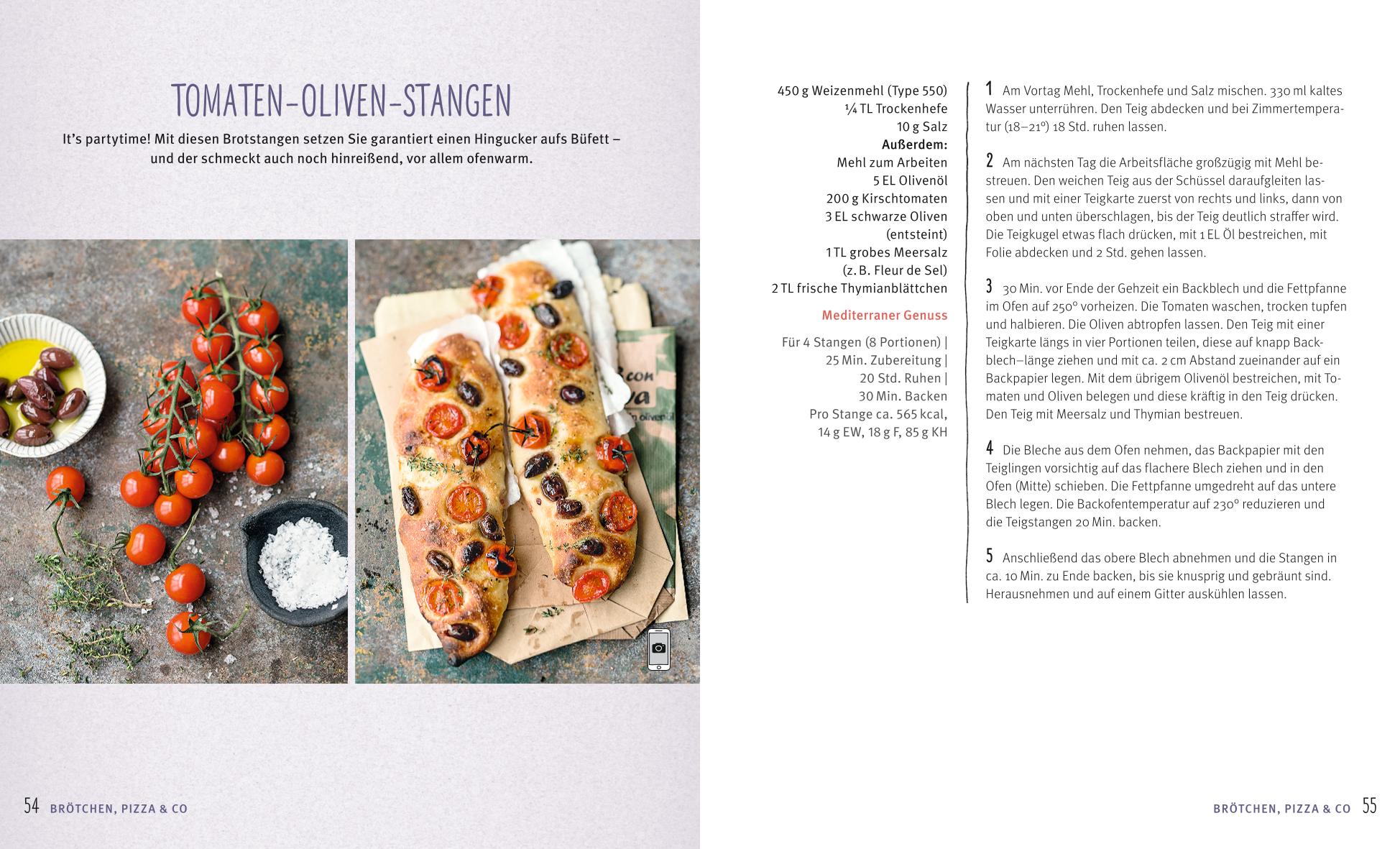 - Brötchen, Pizza & Co.: Müslibrotchen, Ciabattabrotchen, Vollkornbrotchen mit Sauerteig, Tomaten-Oliven-Stangen, Rustikale Kase-Pizza