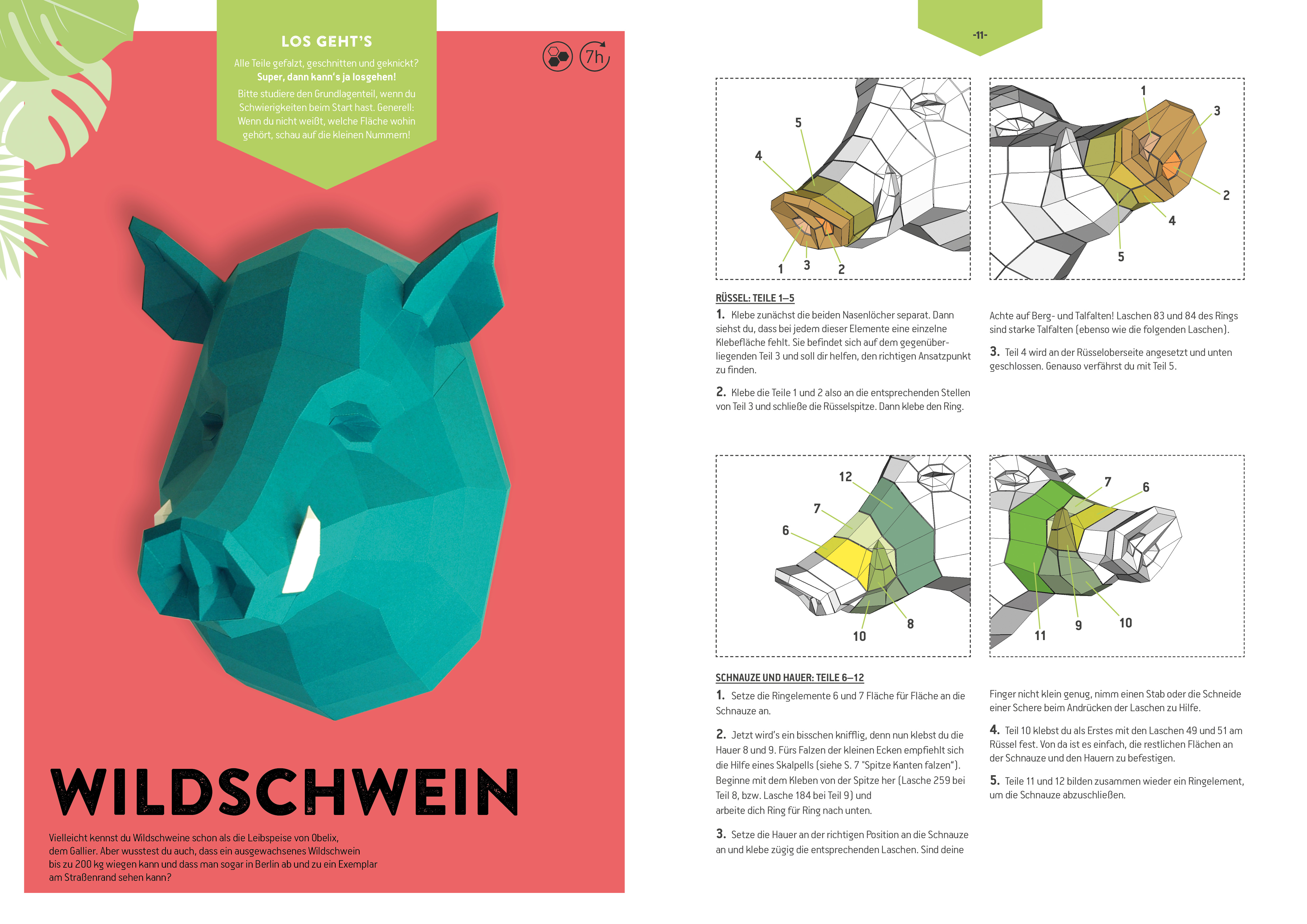 Mit diesem Set holen Sie sich coole Papierskulpturen und tierischen Faltspaß in die eigenen vier Wände. Dank der beiliegenden durchgefärbten Papierbogen mit aufgedruckter Vorlage können Sie direkt loslegen und erwecken so ein Wildschwein und eine Tapirfamilie zum Leben. Dank der bebilderten Faltanleitungen in "PAPIERtier" finden auch Einsteiger den optimalen Einstieg in das Falten und Zusammenkleben der niedlichen Papiertiere. Bastelspaß und Designobjekt in einem - ausschneiden, falten, kleben, fertig!