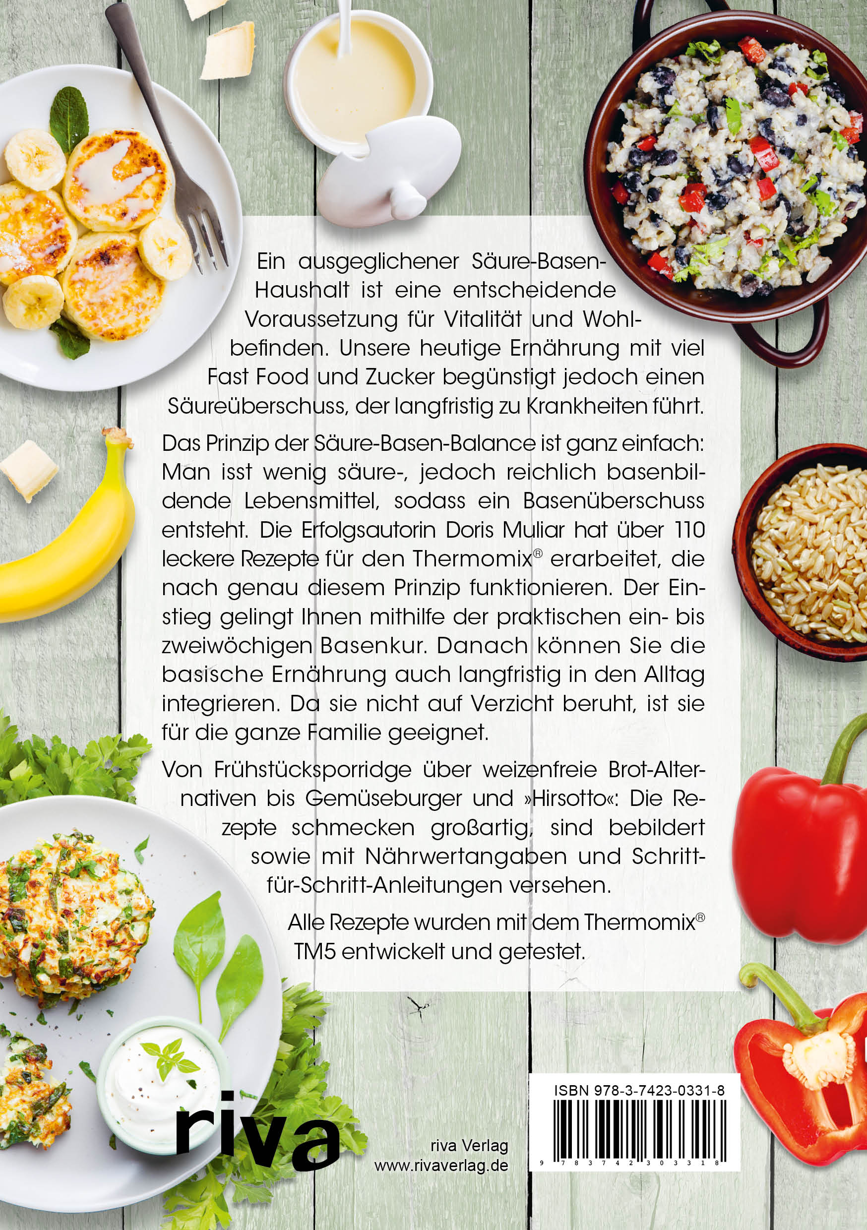 Ein ausgeglichener Säure-Basen-Haushalt ist eine entscheidende Voraussetzung für Vitalität und Wohlbefinden. Unsere heutige Ernährung mit viel Fast Food und Zucker begünstigt jedoch einen Säureüberschuss, der langfristig zu Krankheiten führt.Das Prinzip der Säure-Basen-Balance ist ganz einfach: Man isst wenig säure-, jedoch reichlich basenbildende Lebensmittel, sodass ein Basenüberschuss entsteht. Die Erfolgsautorin Doris Muliar hat über 110 leckere Rezepte für den Thermomix® erarbeitet, die nach genau diesem Prinzip funktionieren. Der Einstieg gelingt Ihnen mithilfe der praktischen ein- bis zweiwöchigen Basenkur. Danach können Sie die basische Ernährung auch langfristig in den Alltag integrieren. Da sie nicht auf Verzicht beruht, ist sie für die ganze Familie geeignet.Von Frühstücksporridge über weizenfreie Brot-Alternativen bis Gemüseburger und »Hirsotto«: Die Rezepte schmecken großartig, sind bebildert sowie mit Nährwertangaben und Schrittfür-Schritt-Anleitungen versehen.Alle Rezepte wurden mit dem Thermomix® TM5 entwickelt und getestet. Unabhängig recherchiert, nicht vom Hersteller beeinflusst.Mehr Informationen finden Sie unter: thermomix-fans.de