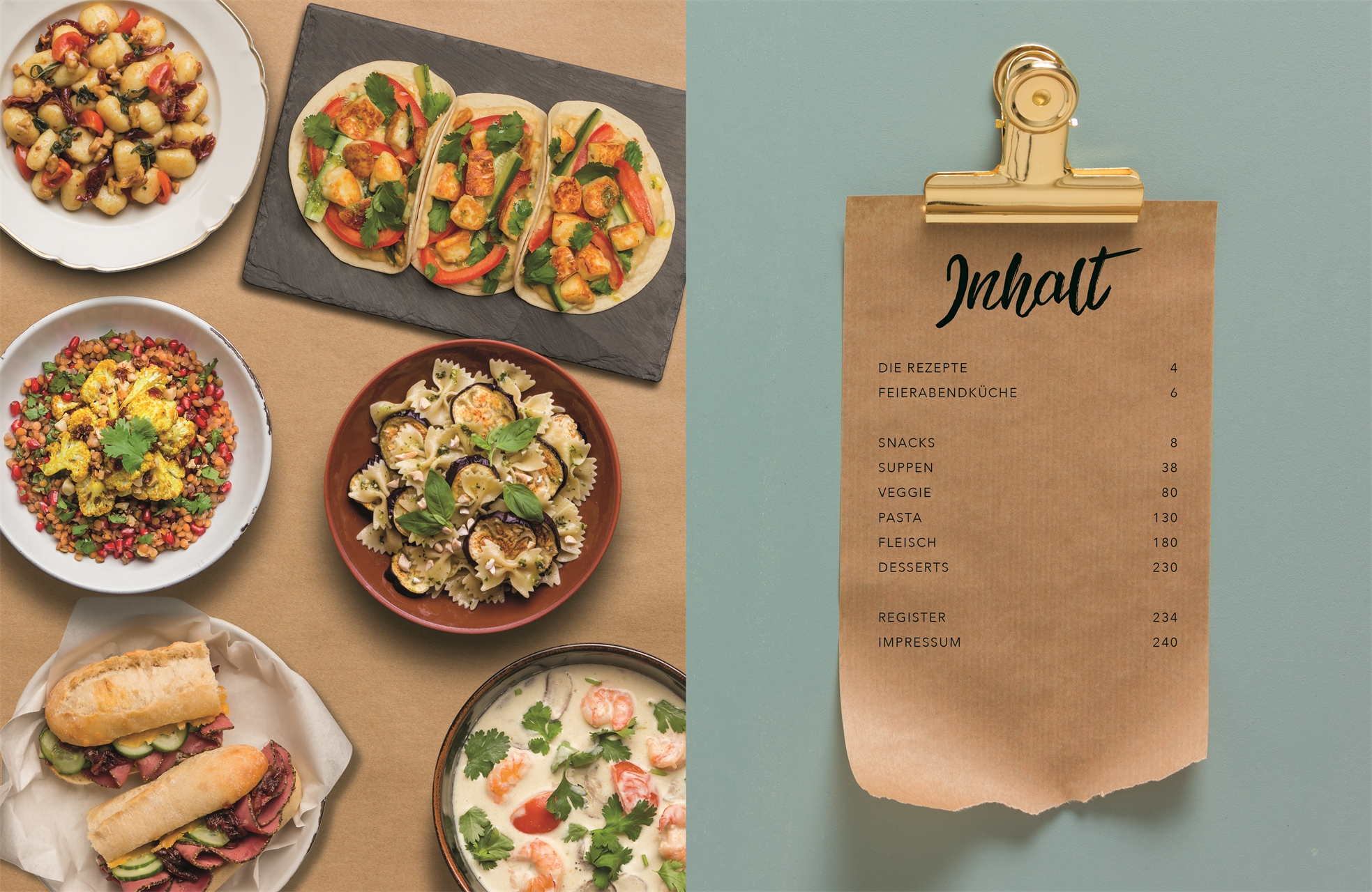 Von köstlichen Speisen für den kleinen Hunger wie frischen Sommerrollen mit marinierten Erdbeeren oder Tomaten-Passionsfrucht-Gazpacho mit Basilikum-Croûtons über leckere Hauptspeisen wie Sobanudeln in Erdnuss-Curry-Sauce mit Kokos und Zuckerschoten bis zu kleinen unwiderstehlichen Sünden wie Zitronentiramisu mit Löffelbiskuits und weißer Schokolade diese kreative Feierabendküche überzeugt auf ganzer Linie und ist einfach nachzukochen!