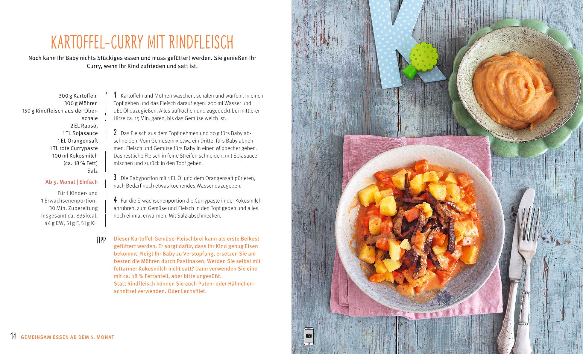 Schnell, gesund, lecker ... und das für Mami und Baby? Ja, das geht und ist viel einfacher, als gedacht! Denn das Kind braucht ab dem 5. Monat kein extra Essen und verträgt das meiste, das auch der Mutter schmeckt. Anfangs püriert, später klein geschnitten und zart gewürzt. Manche Babys bevorzugen Püriertes, manche möchten gleich von Mamis Teller essen. Dagmar von Cramm macht es mit ihren Kombi-Rezepten für eine gesunde und ausgewogene Ernährung dem jungen Mutter-Kind-Duo leicht, denn das Prinzip ist 1 x Kochen und 2 x Gesundes für beide auf den Tellern. Bis zum 12. Lebensmonat wird das Babyessen mangels Zähnchen noch abgezweigt und püriert und ab dem 1. Jahr gibt es für Mutter und Kind dasselbe. So erleben die Kleinsten schon ab dem 5. Monat spannende Kombinationen, lernen die Vielfalt der Gerichte kennen und entwickeln ihren Geschmackssinn. So macht es Spaß, gemeinsam ein Lieblingsessen zu entdecken.