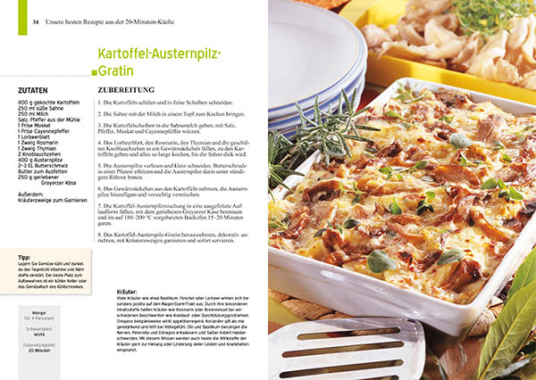 Mit den köstlichen Gerichten aus unserer 20-Minuten-Küche lassen sich nicht nur Gäste verwöhnen, sondern sie sind auch ideal für den Alltag und für die Familie. Alle unsere Gerichte lassen sich leicht und schnell zubereiten. Wir haben für Sie 100 herrliche Rezepte gesammelt und aus probiert. Alle Rezepte sind übersichtlich zusammengestellt, durchgehend mit farbigen Abbildungen versehen und Schritt für Schritt erklärt. Ein ausführlicher Ratgeberteil, der viele Tipps und Tricks verrät, garantiert den Erfolg. Gutes Gelingen und viel Spaß beim Kochen und Genießen.