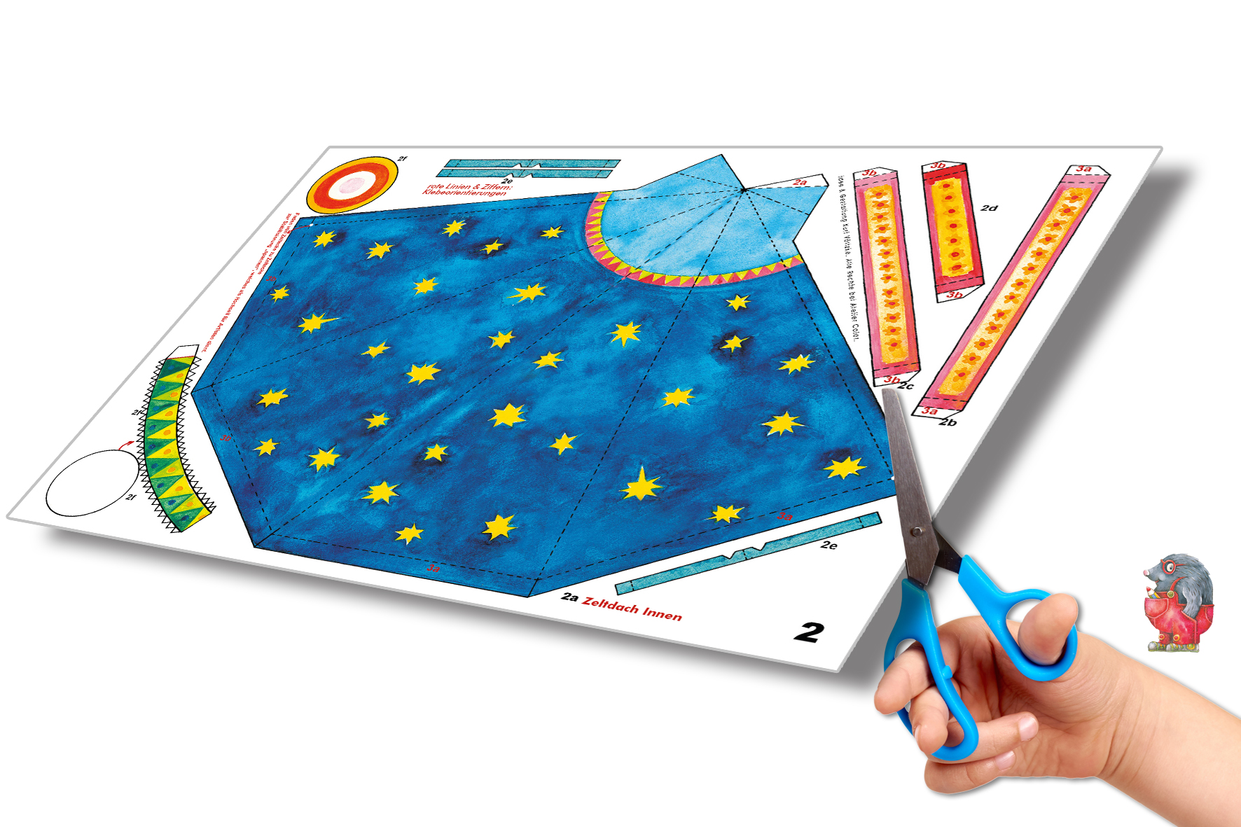 | Zusatzinfo | 16 Seiten illustriert mit einem Zirkuszelt, Zirkuswagen, Figuren und den Tieren, inklusive Bauanleitung |