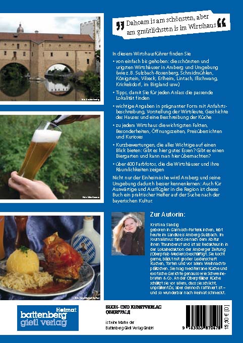 Eine 500-jährige Brautradition begründet Ambergs guten Ruf als Bier-Stadt. Essen und Trinken hält Leib und Seele zusammen: Das gilt nicht nur für die zahlreichen Bergfeste, zu denen tausende Wallfahrer Jahr für Jahr auf die heiligen Berge in der Region pilgern, sondern gleichfalls für die Wirtshauskultur in den Städten und Dörfern der mittleren Oberpfalz.Begleiten Sie die Autorin Kristina Sandig auf einer Tour durch die Wirtshäuser in Amberg und Umgebung, erleben Sie Geschichten und Wirtshaus-Geschichte, besuchen Sie Traditionshäuser, lernen Sie Wirts-Dynastien kennen. Probieren Sie das, was jedes Wirtshaus so einzigartig macht. Kommen Sie mit in Wirtshäuser, die noch zum Dorf gehören wie die Kirche. Treten Sie ein in Gaststuben, wo zwar nicht mehr wie früher geraucht und gerauft, aber durchaus noch gekartelt und geschnupft wird, probieren Sie Schäuferle oder Haxen, deren Kruste so knusprig ist, dass sie bei jedem Bissen knackt. Lassen Sie sich fluffige Kartoffelknödel und sämige Saucen auf der Zunge zergehen, beißen Sie genüsslich in Gockerl-Schenkel, zausen Sie Ripperln bis auf die Knochen ab. Genießen Sie die heimelige Atmosphäre der Wirtshäuser und lassen Sie sich anstecken von der Leidenschaft, mit der am Stammtisch diskutiert und debattiert wird. Suchen Sie sich in den Biergärten ein schattiges Plätzchen unter alten Bäumen, lassen Sie sich zu einer frisch gezapften Halben Bier eine leckere Brotzeit oder eine deftige Schlachtschüssel auftischen.Hereinspaziert in die Wirtshäuser und wohlgefühlt: So herrlich schmeckt die Oberpfalz!