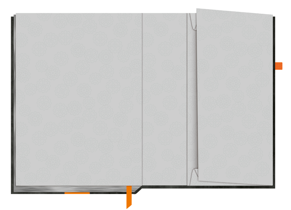 Hochwertig ausgestattet mit Sammeltasche, Gummiband-Verschluss, Leseband und Stifthalter.