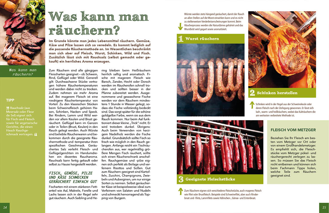 Schon seit Urzeiten wird Räuchern dazu verwendet, Lebensmittel haltbar zu machen und ihnen einen angenehm würzig-rauchigen Geschmack zu verleihen. Dass man Fleisch, Fisch und Gemüse auch zuhause selbst Räuchern kann, wissen hingegen die wenigsten. Dabei ist Selberräuchern gar nicht so schwer. Mit dem nötigen Grundwissen und ein wenig Vorbereitung kann jeder zum Räucherprofi werden! Erfahren Sie alles Wissenswerte über diese traditionelle Konservierungsmethode und lernen Sie die Möglichkeiten und Vorzüge der verschiedenen Räucherarten wie Kalt-, Warm- und Heißräuchern kennen. Leckere Rezepte, praktische Tipps und Tricks sowie zahlreiche Bilder und Anleitungen garantieren köstliche Ergebnisse.